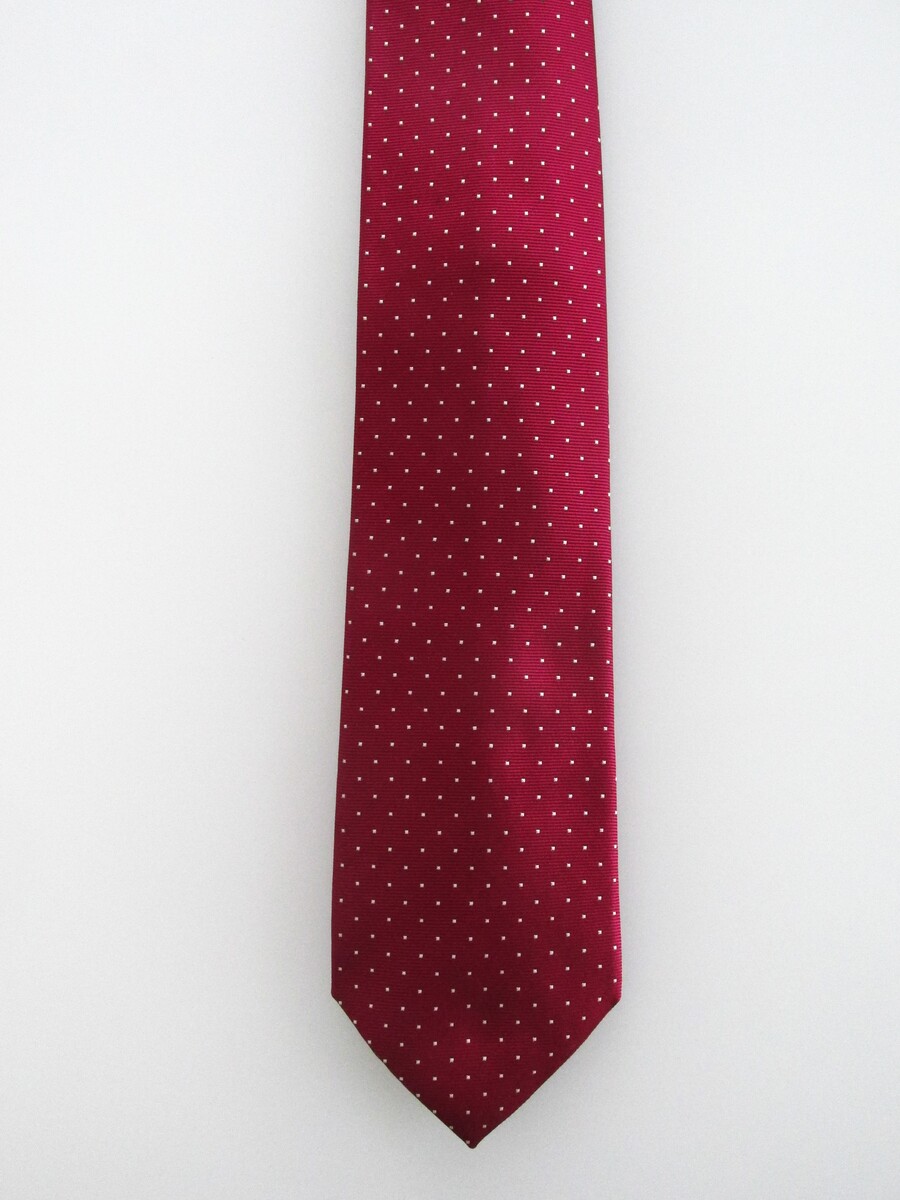 Description: Up for sale is a Charles Tyrwhitt (NWOT) men's silk tie. The tie is handmade in the United Kingdom of 100% silk. The tie has a white pin dot pattern on a raspberry colored background. Dimensions are approximately 58" long x 3.50" wide.