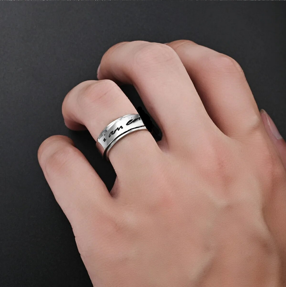 Vintage Stainless Steel 8mm Carved "I Am Enough" Motivational Rotate Ring