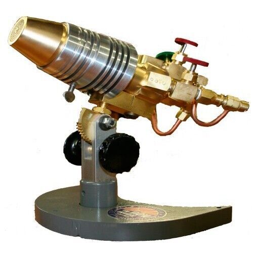 The Carlisle Burners CC + 2 Inlet #5 Centerfire with Rack Pinion Desktop Bench Burner Torch is a larger version of the CC Burner. It has an added row of tubes on the outer fire resulting in a larger flame. This burner may be used with a mixture of oxygen and either natural gas, propane, or hydrogen (different tips are suggested depending on the gas used).