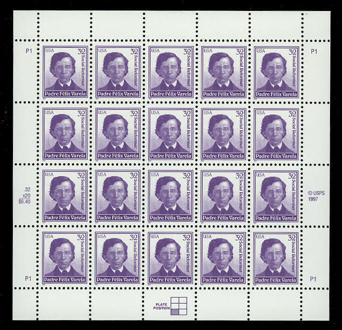 1997 32c Padre Felix Varela, Roman Catholic Priest Scott 3166 Mint Sheet of 20