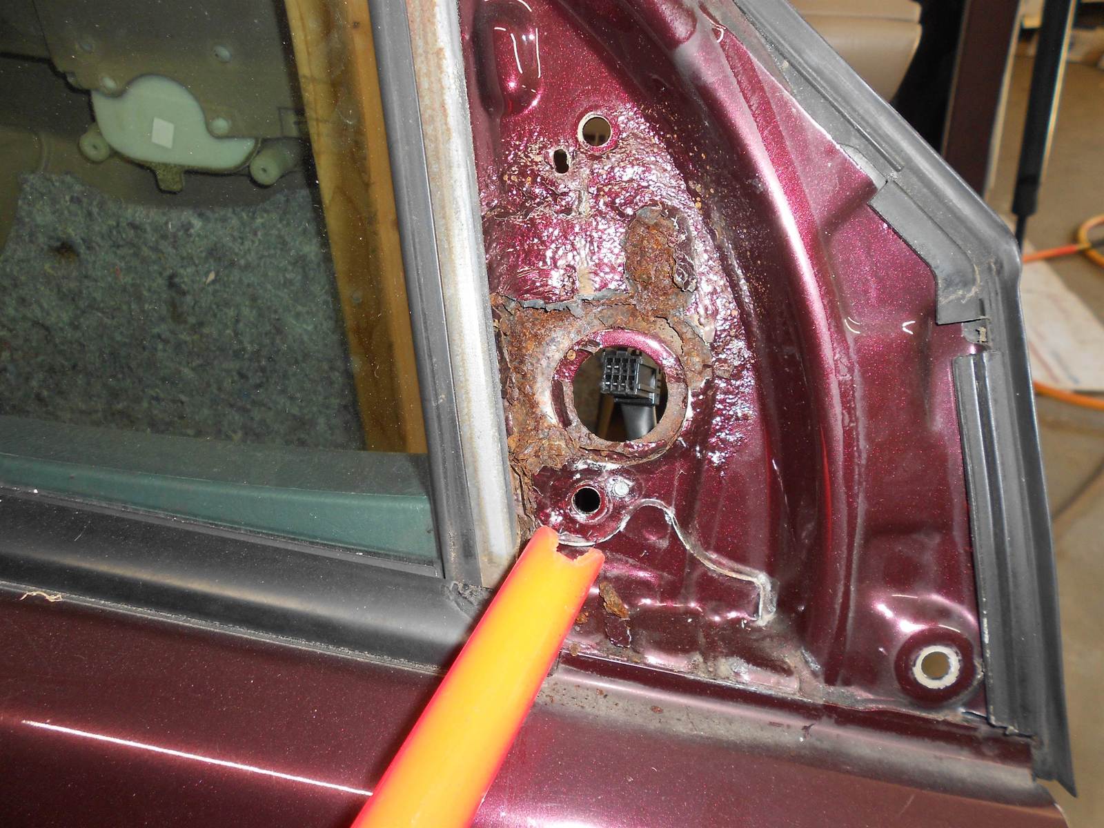scuffs, chips, rust and bubbling where mirror goes, wires cut scratches.