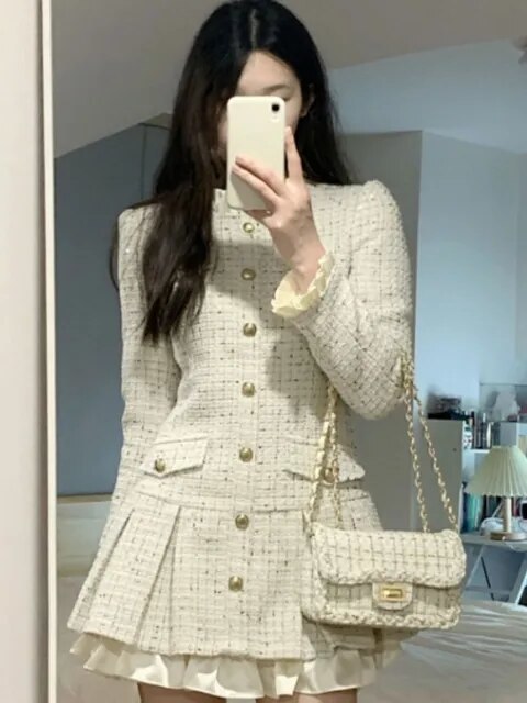 Long Sleeve O-neck Tunic Ruffles Pleated Chic Mini Dresses