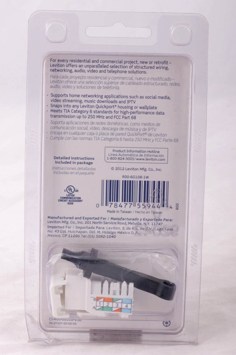 Leviton 6G108-1W network CAT6 Jack Quickport Professional Grade White