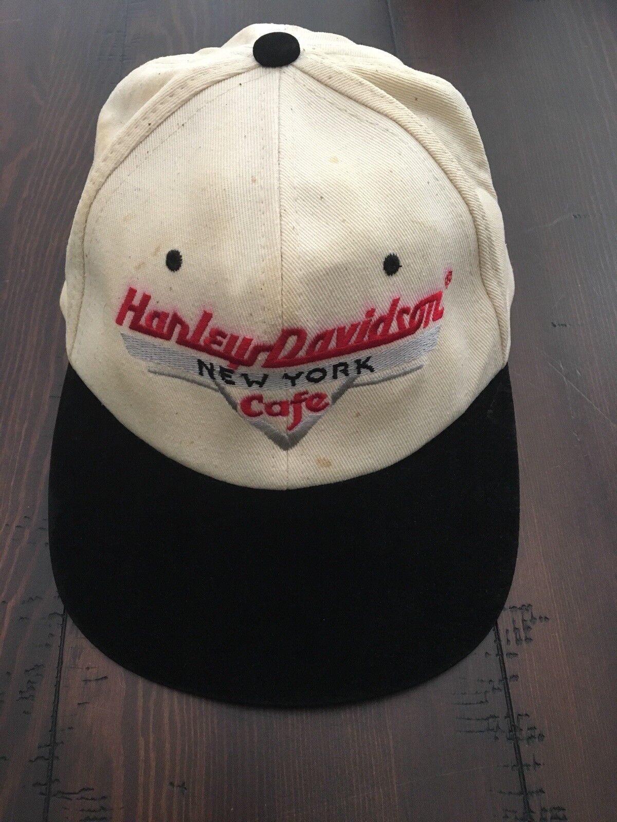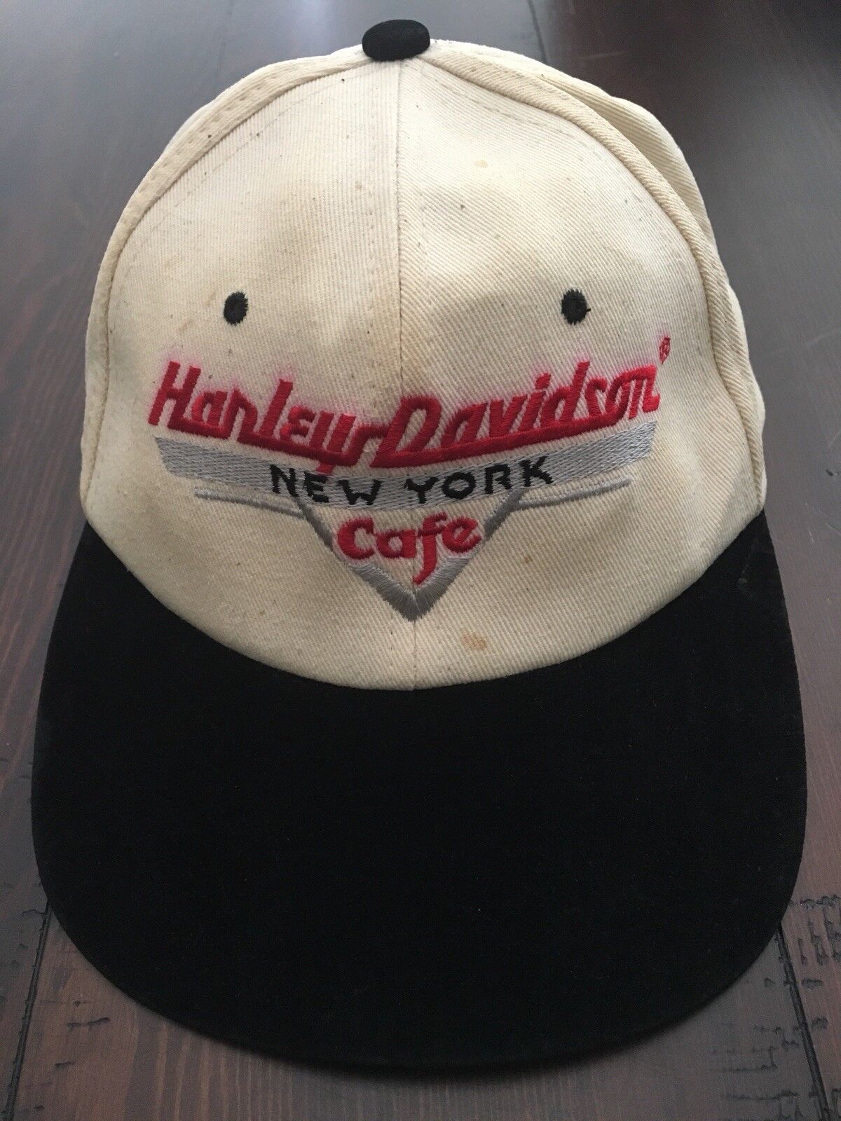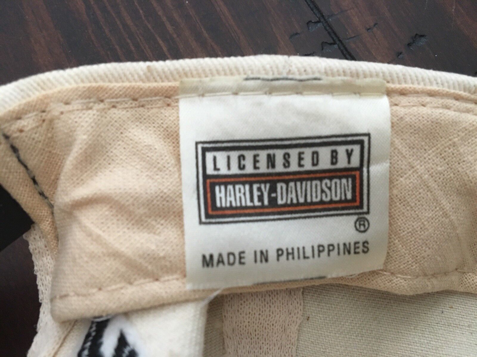 Some staining on outer wear on sweatband -also Red stitched lettering "Harley Davidson" seems to have bled slightly