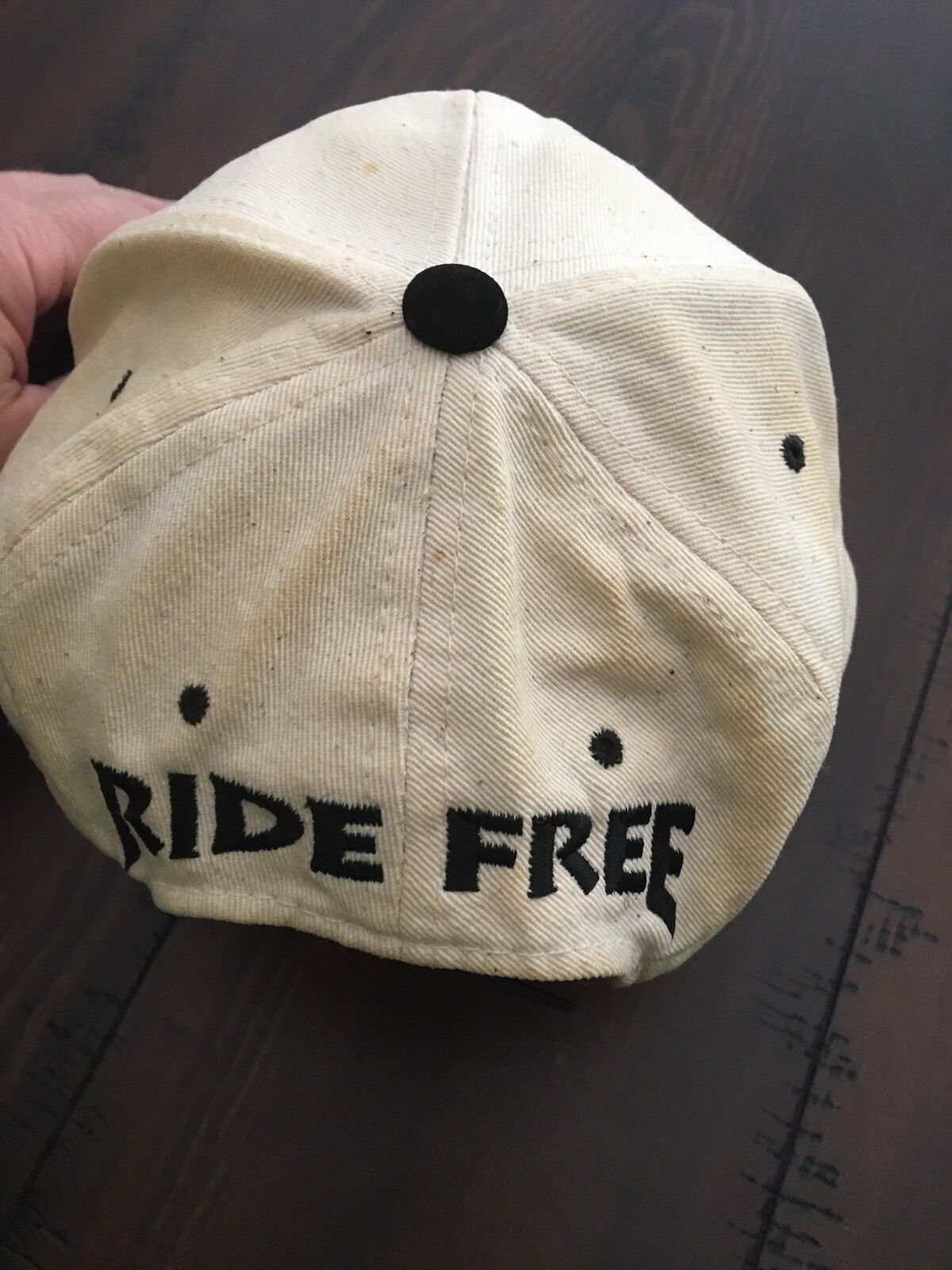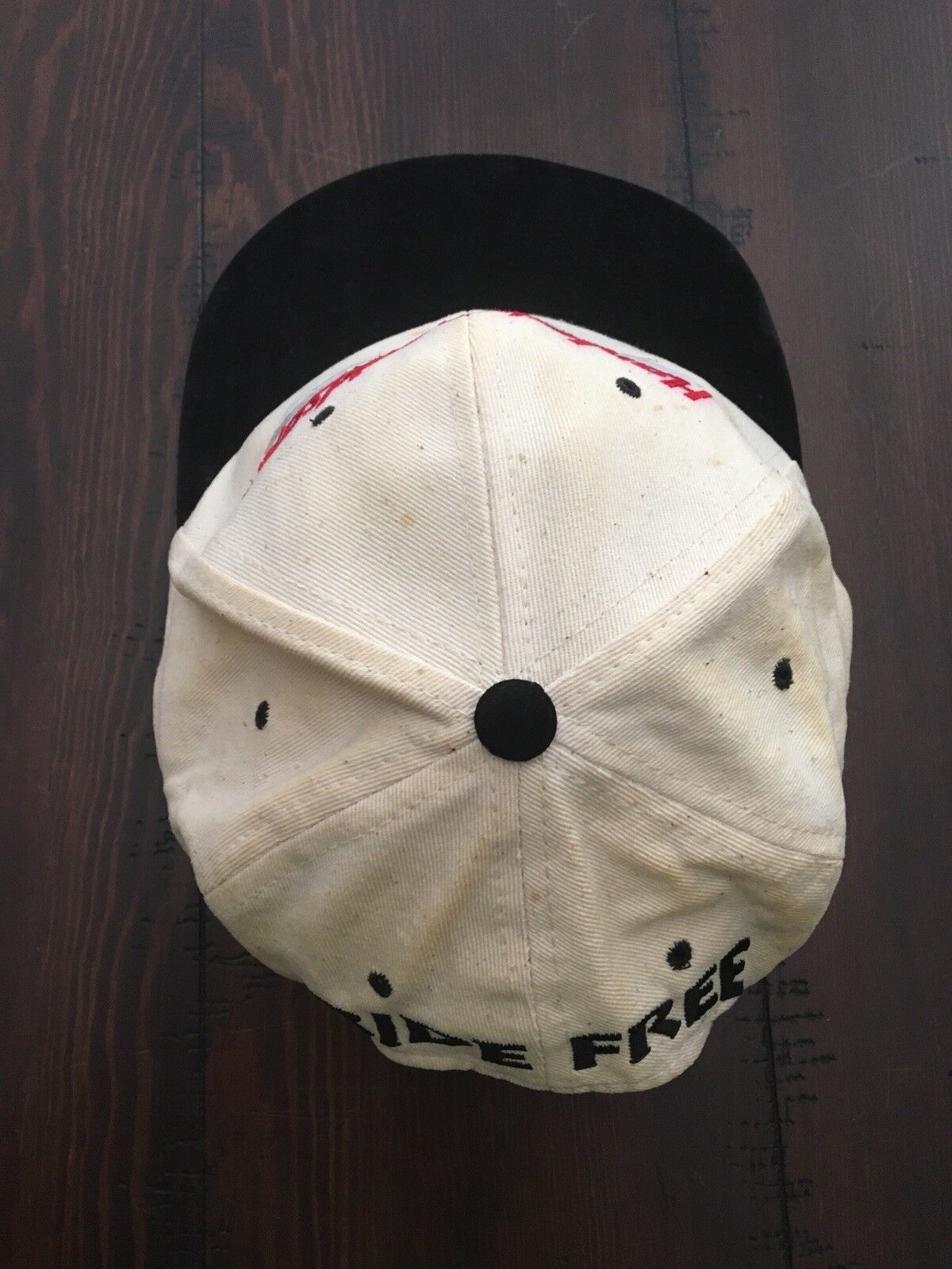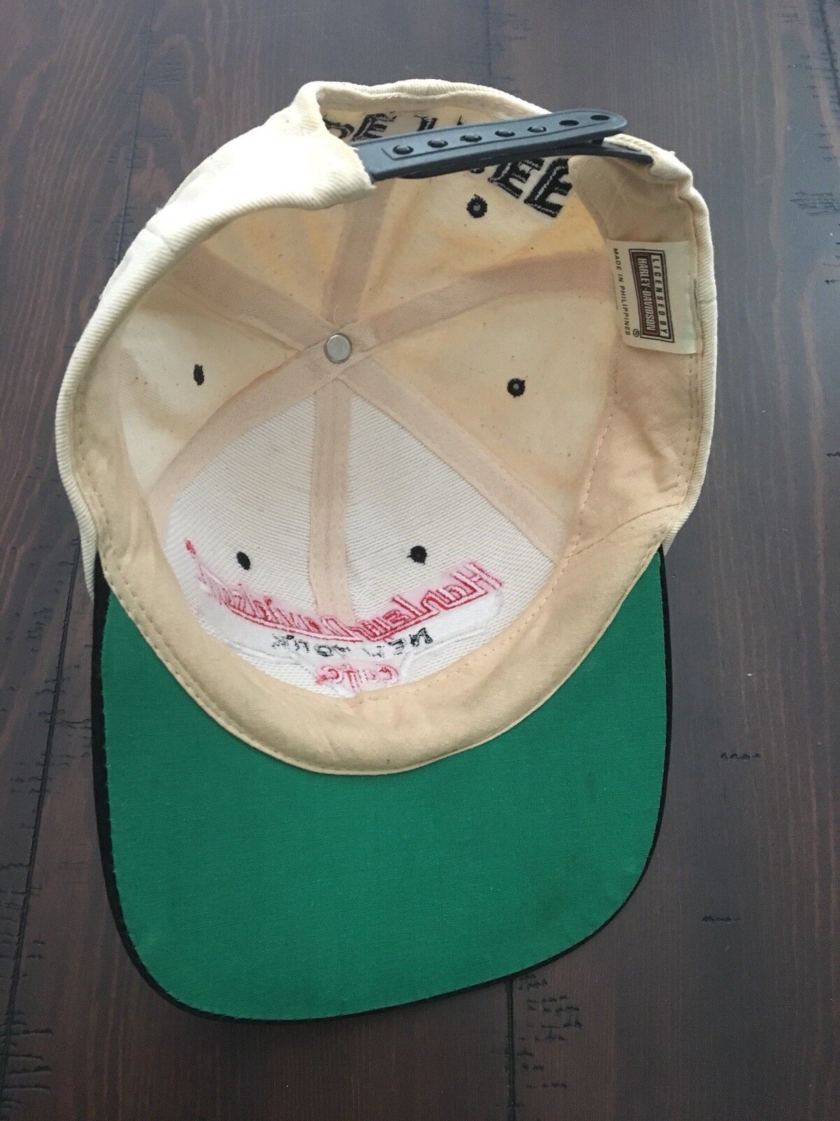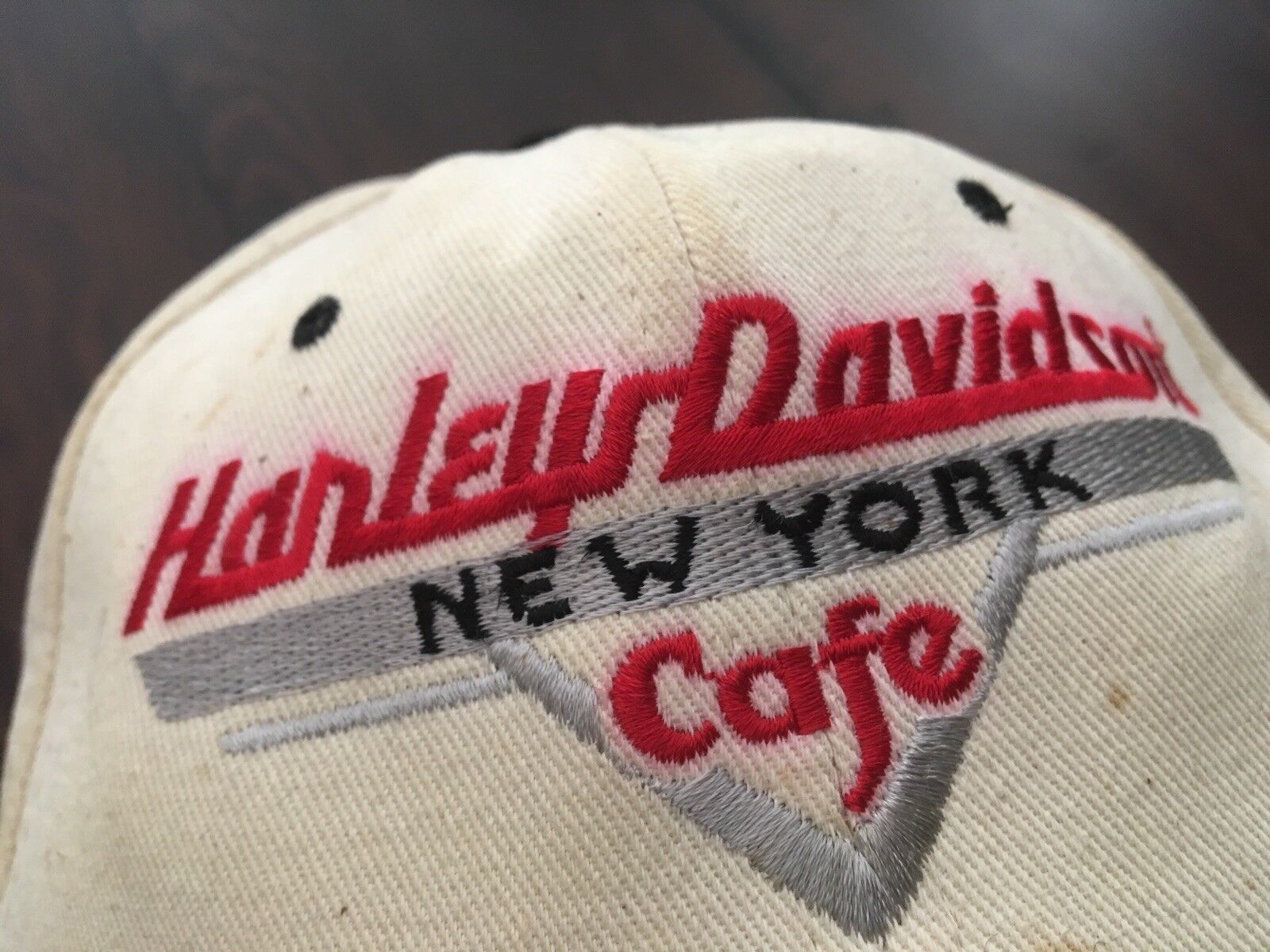 Some staining on outer wear on sweatband -also Red stitched lettering "Harley Davidson" seems to have bled slightly