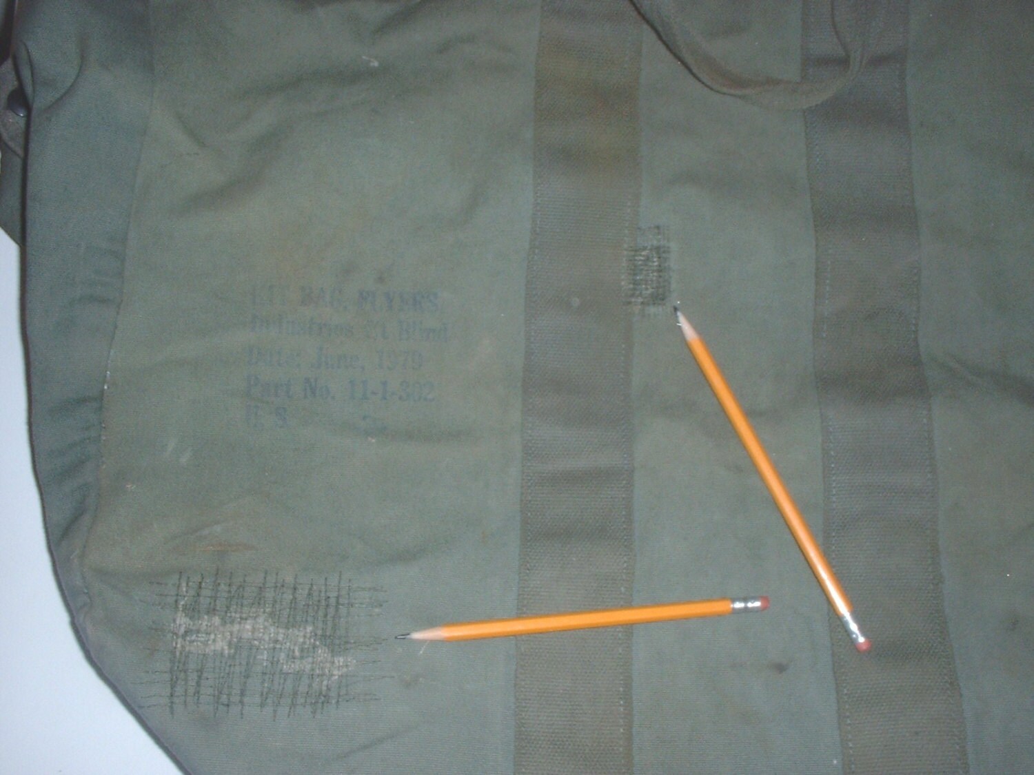 I had a second, nearly identical bag from the same person and it was marked "VAQ" meaning "fixed-wing electronics warfare squadron" in US Navy lingo.