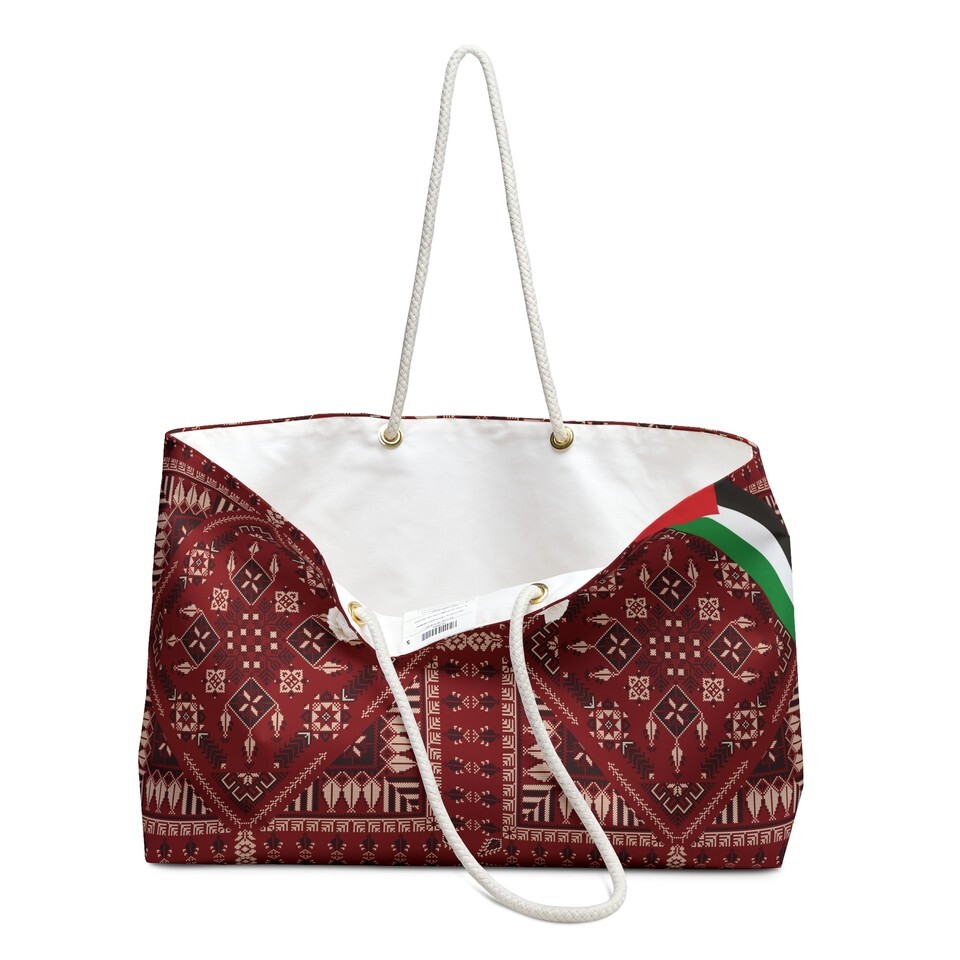 Palestinian Weekender Bag with Paletinian and patern and the Palestinian ribbon flag