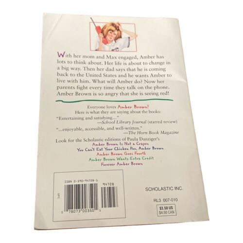 I have for sale a copy of Vintage 1998 Amber Brown Sees Red Chapter Book by Paula Danziger. It?s in used condition. It includes the bookmark which is still unpunched from the book. There are some bends and small stains on the cover. The pages and inside covers have yellowed from age. There are some small bends on the corners of some of the pages. If you have any questions, please ask. I do combine shipping. Check out my other items.