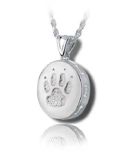 Sterling Silver Round Dog Paw Funeral Cremation Urn Pendant for Ashes w/Chain