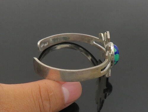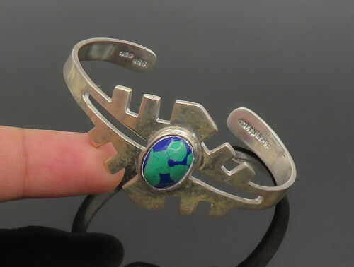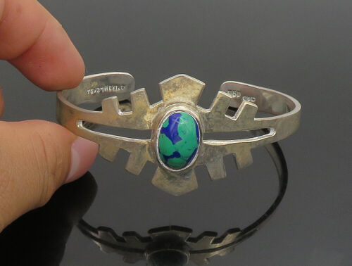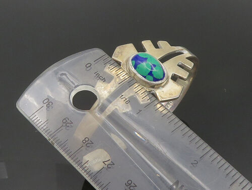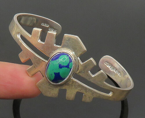 MEXICO 925 Silver - Vintage Cabochon Cut Azurite Abstract Cuff Bracelet - BT9369