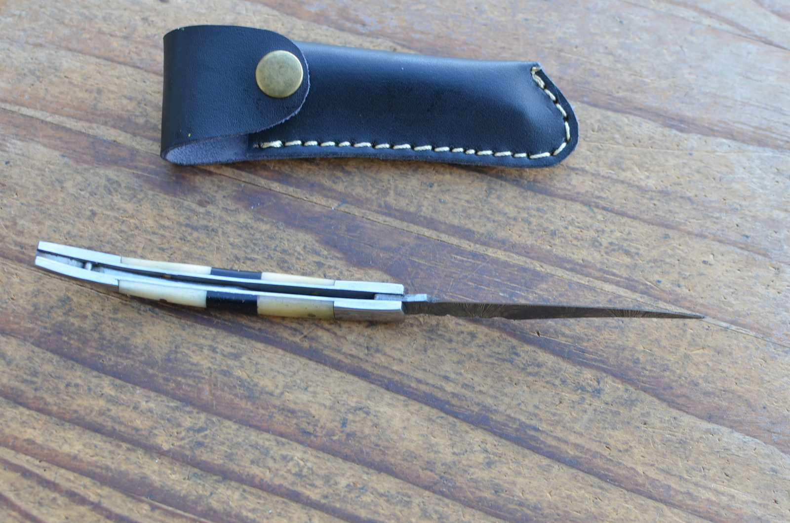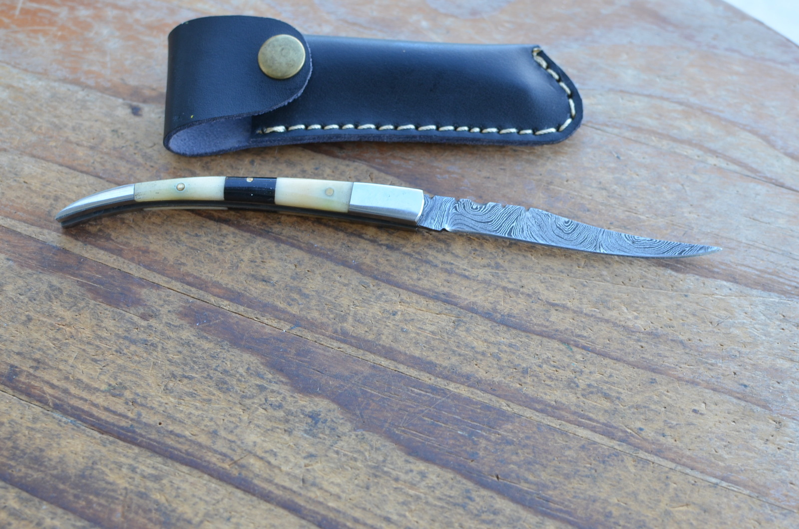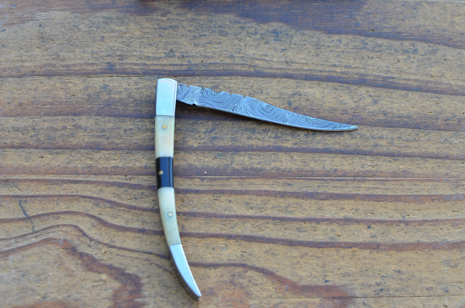 Vintage handmade damasus steel folding knife.