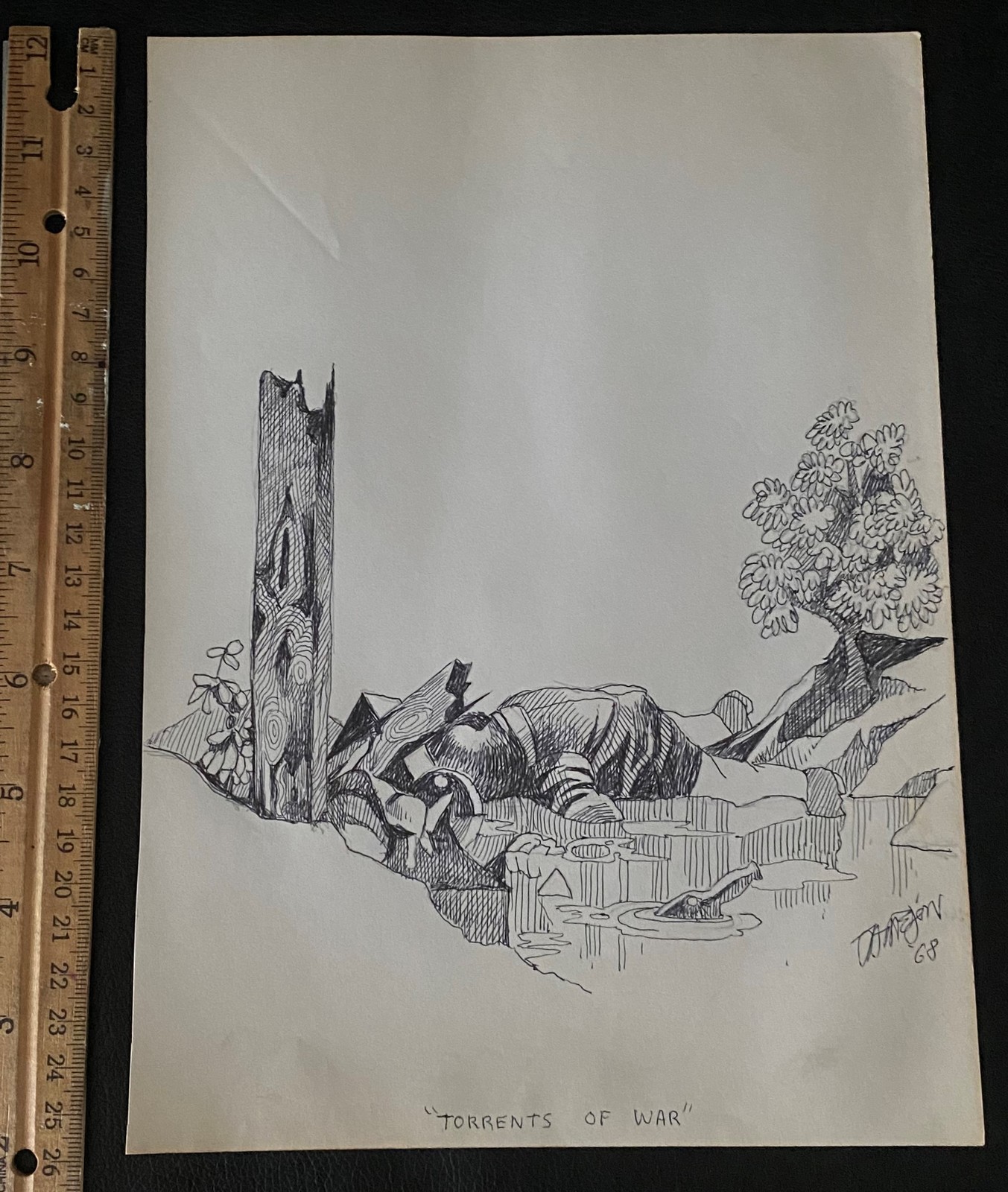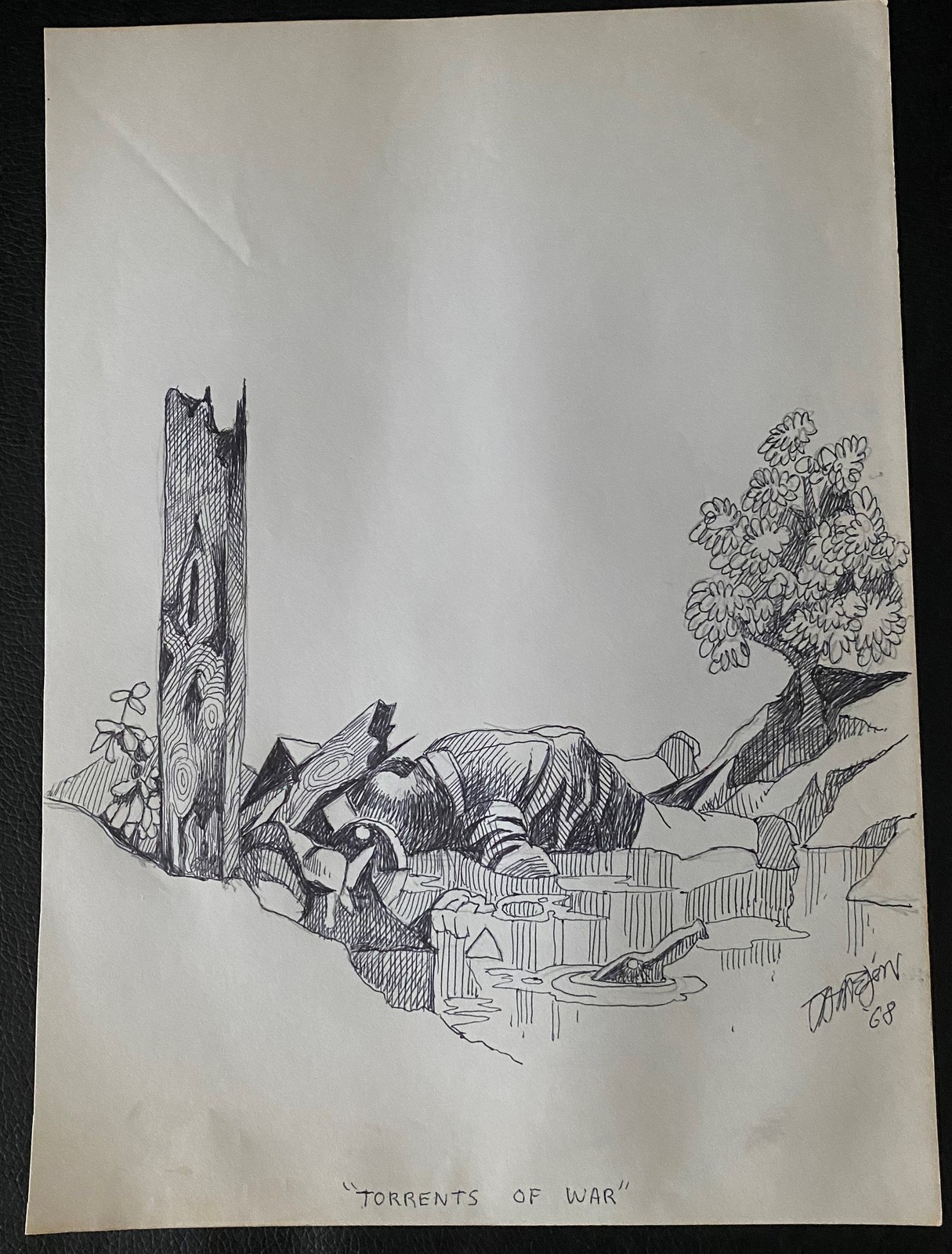Bill Jameson Surrealism Drawing "Torrents Of War" 1968