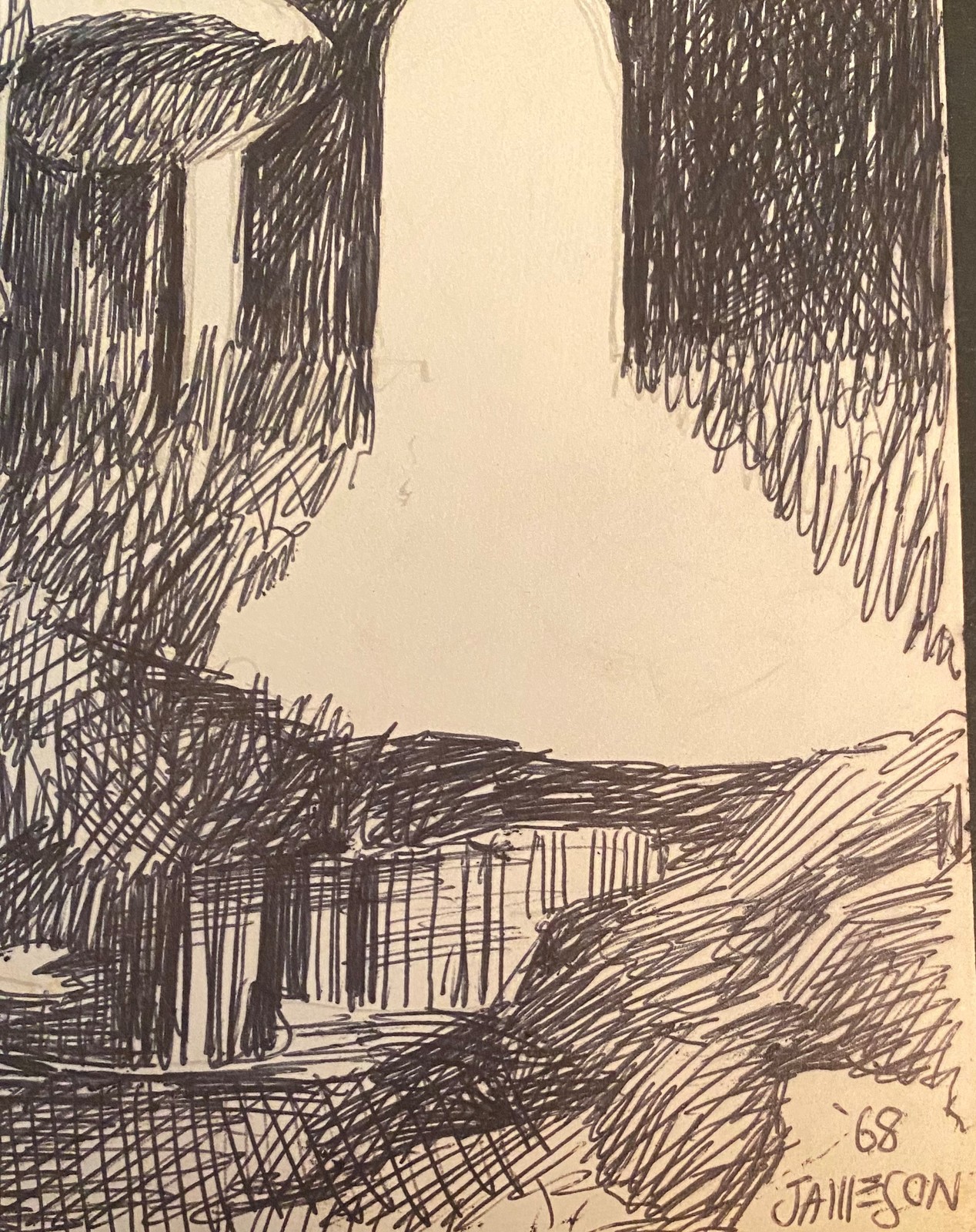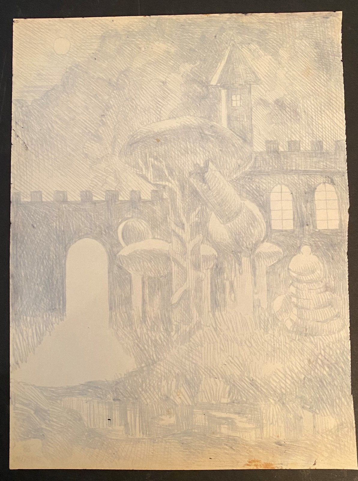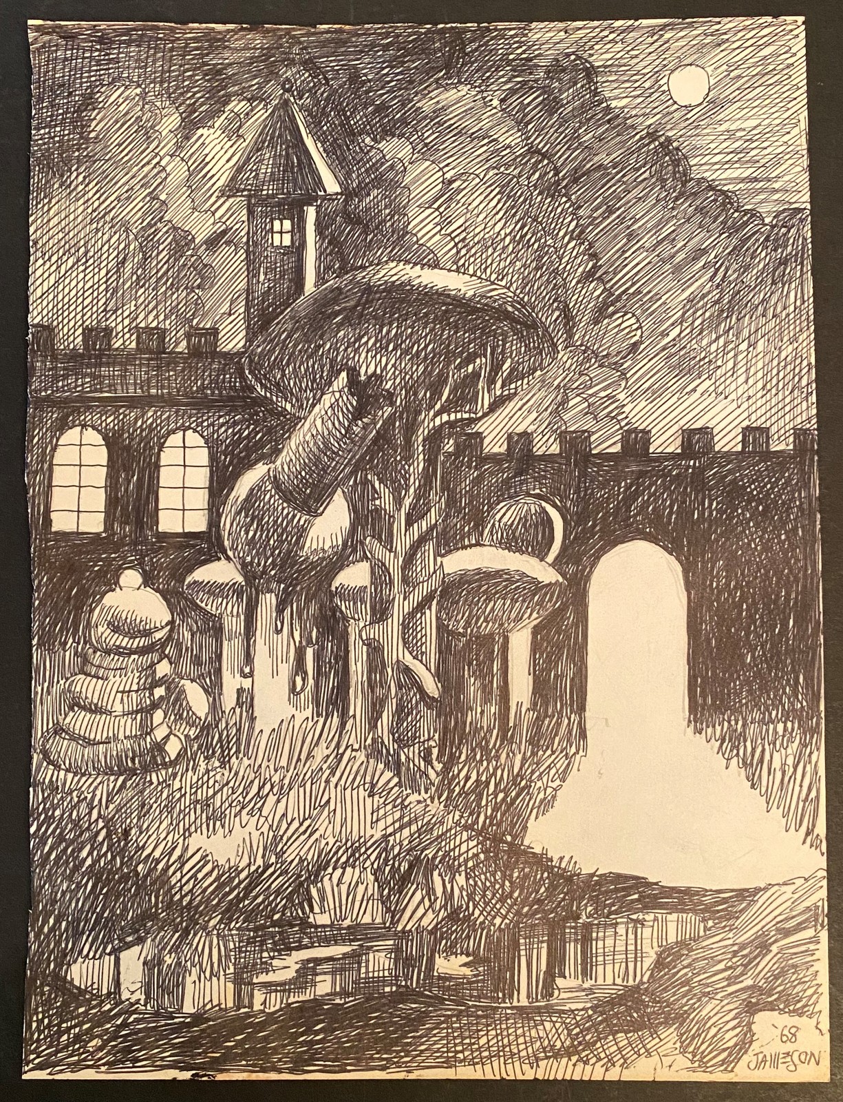 Bill Jameson Surrealism Drawing "Dark Tower" 1968