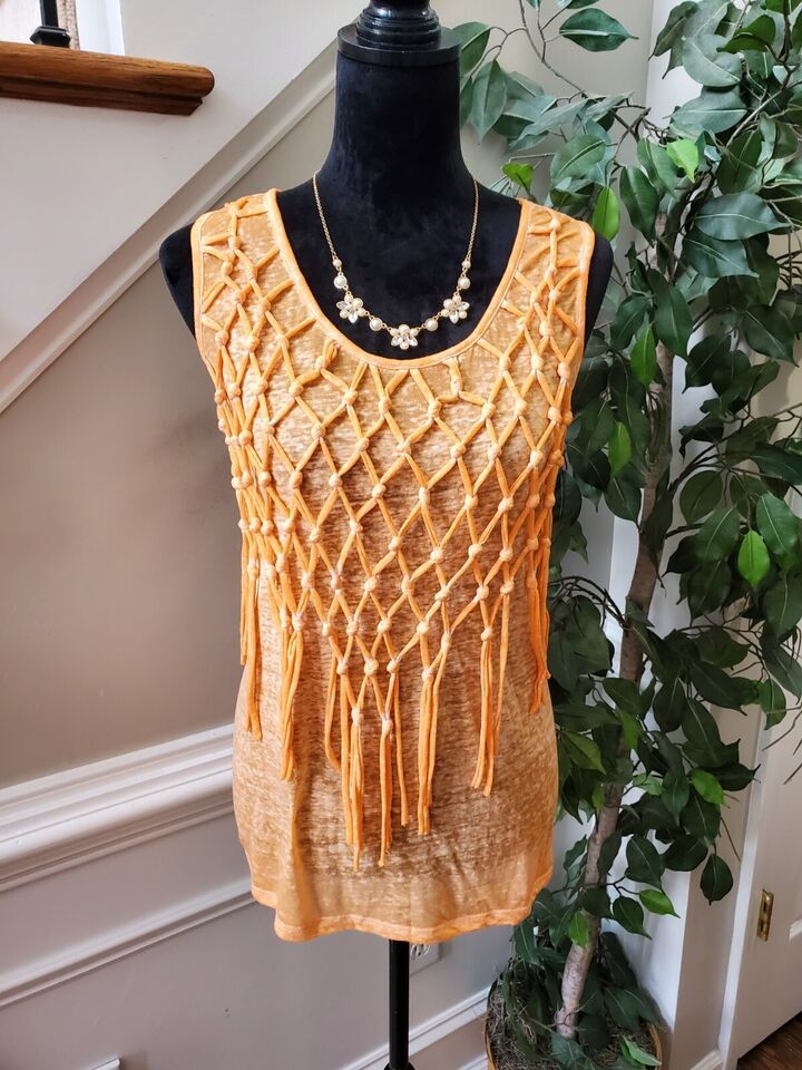 Cato Women's Orange Cotton Round Neck Sleeveless Casual Top Blouse Size Large.