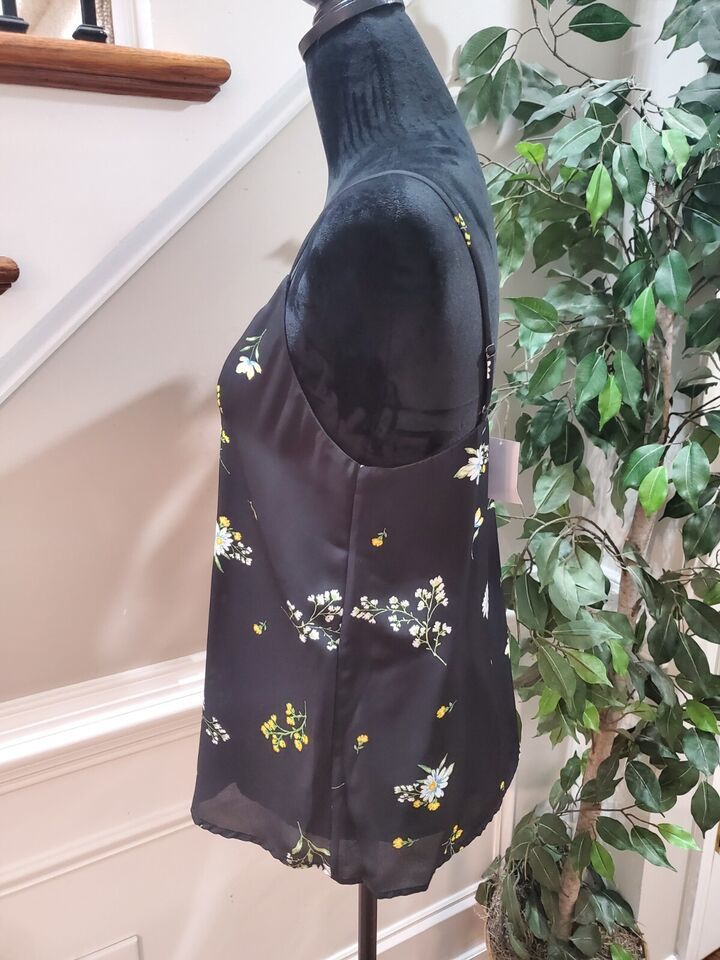 Socialite Black Floral Scalloped V-Neck Sleeveless Camisole Top Blouse Small Description