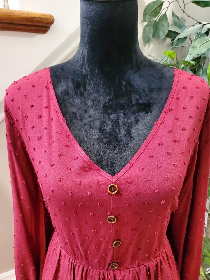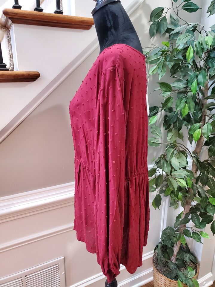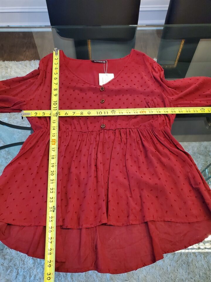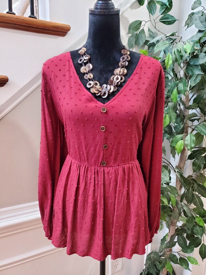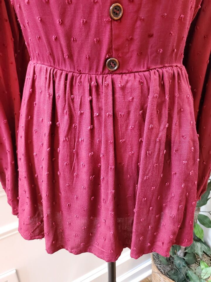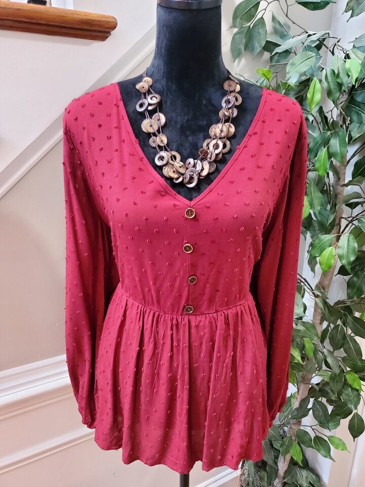 Bloomchic Dark Red Polka Dot Textured Ruffled Blouse Size 12