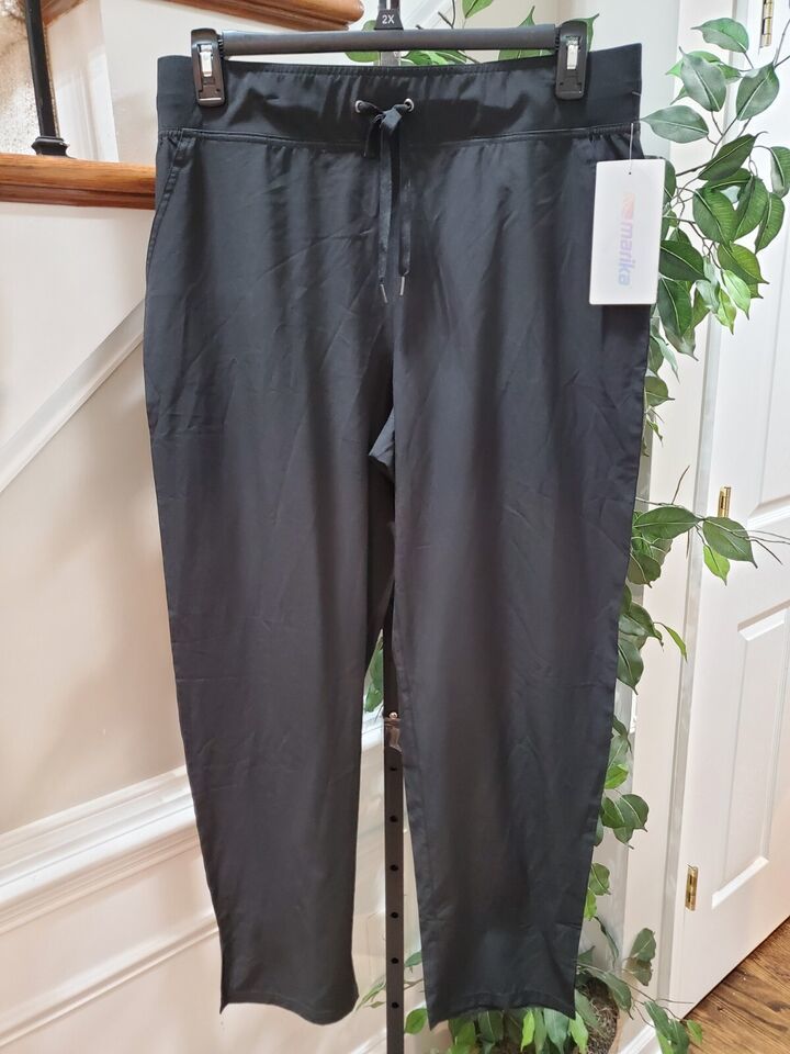 Marika Womens Black Polyester Flat Front Pull On Drawstring Yoga Pant Size XL