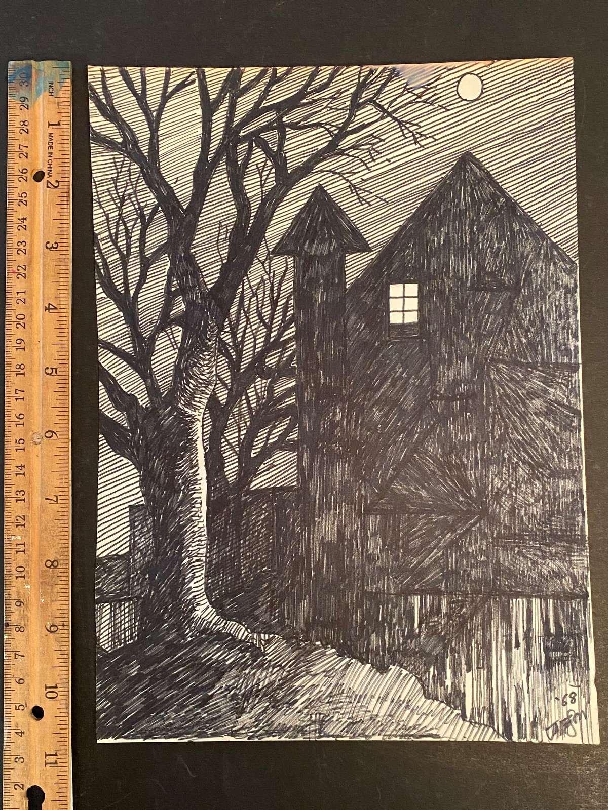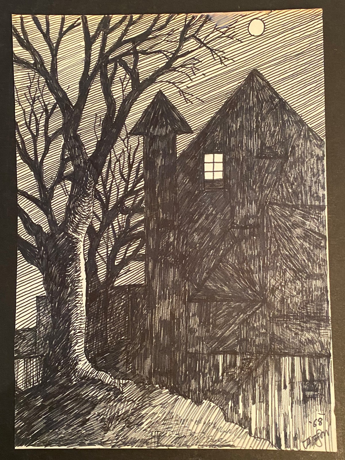 Bill Jameson Surrealism Drawing "Second Floor Night View" 1968