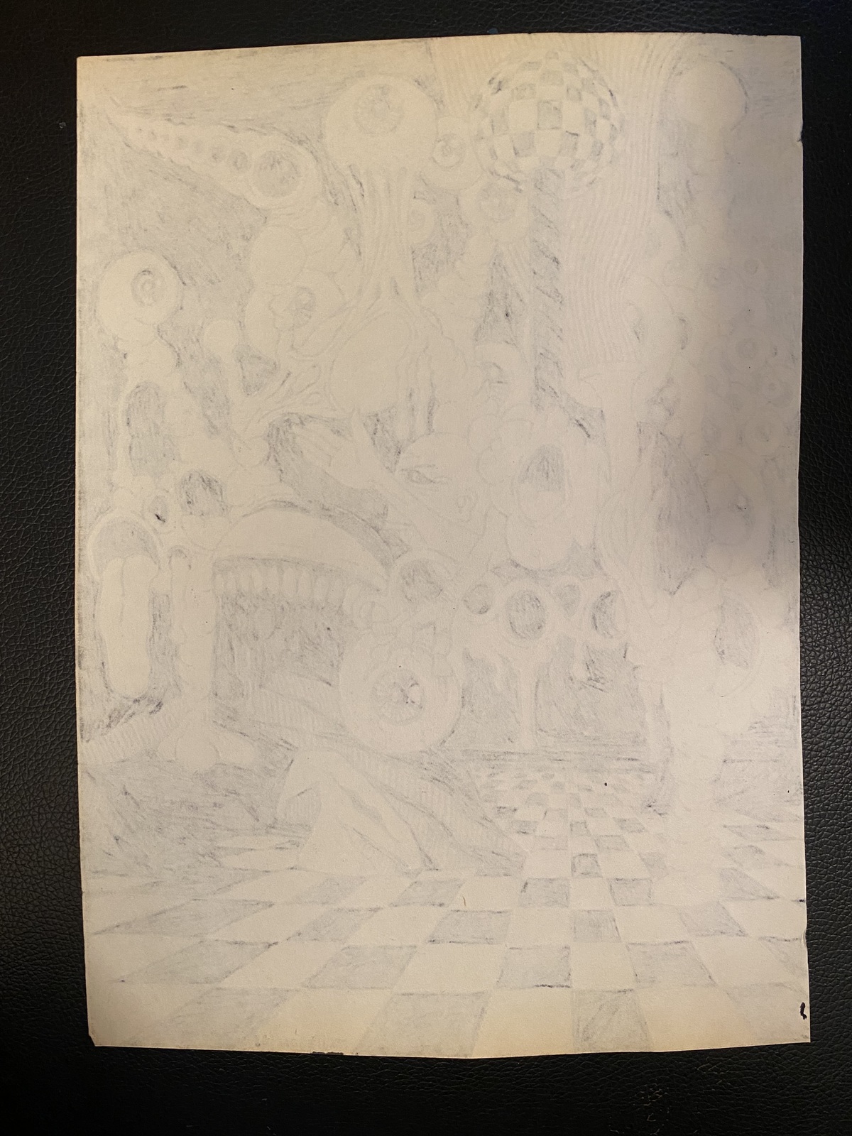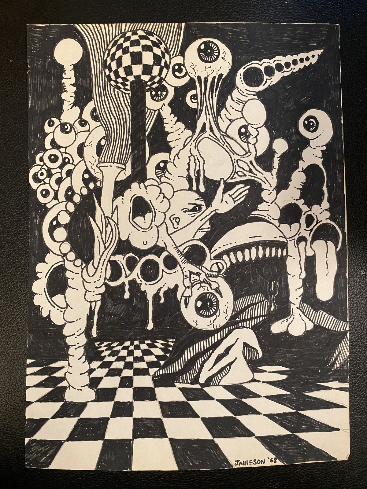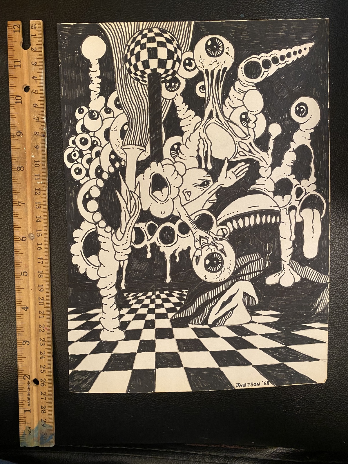 Bill Jameson Surrealism Drawing "The Eye Room" 1968