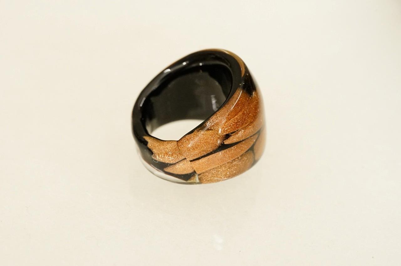 Artisan Handcrafted Dichroic Glass Jewelry Dome Ring Copper Brown Size 5.5