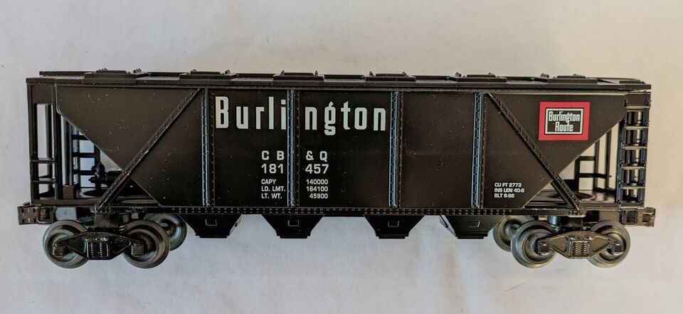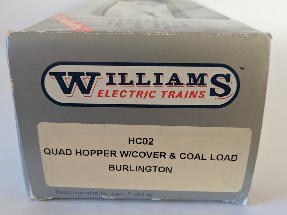 O Gauge Train Williams HC02 Quad Hopper w Cover Coal Load Burlington in Box