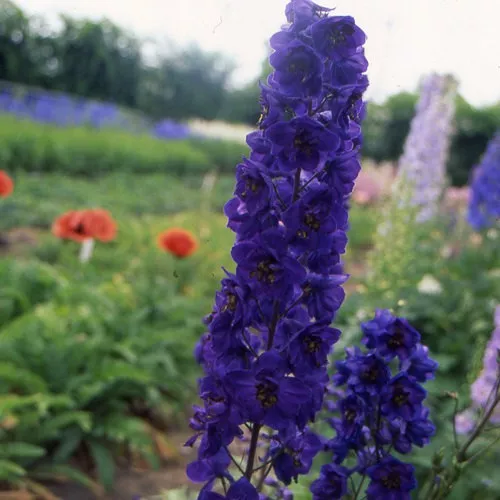 These are tall, classy and beautiful flowers. Delphiniums are sturdy, long-lived and disease and deer resistant perennials. Long lasting flowers that bloom the first year and grow to 5-6 Feet tall. The hotter zones may need half a day of shade. Can be started indoors in winter and transplanted outdoors in the spring or they can be sown directly into the ground in spring, summer or fall. Blooms June and July and often in the fall again. Perennial for years to come, since they self sow. Long lasting as a cutting flower, and is beautiful mixed with whites or reds, or popping up above the mix. Plant any season for next season's blooms!