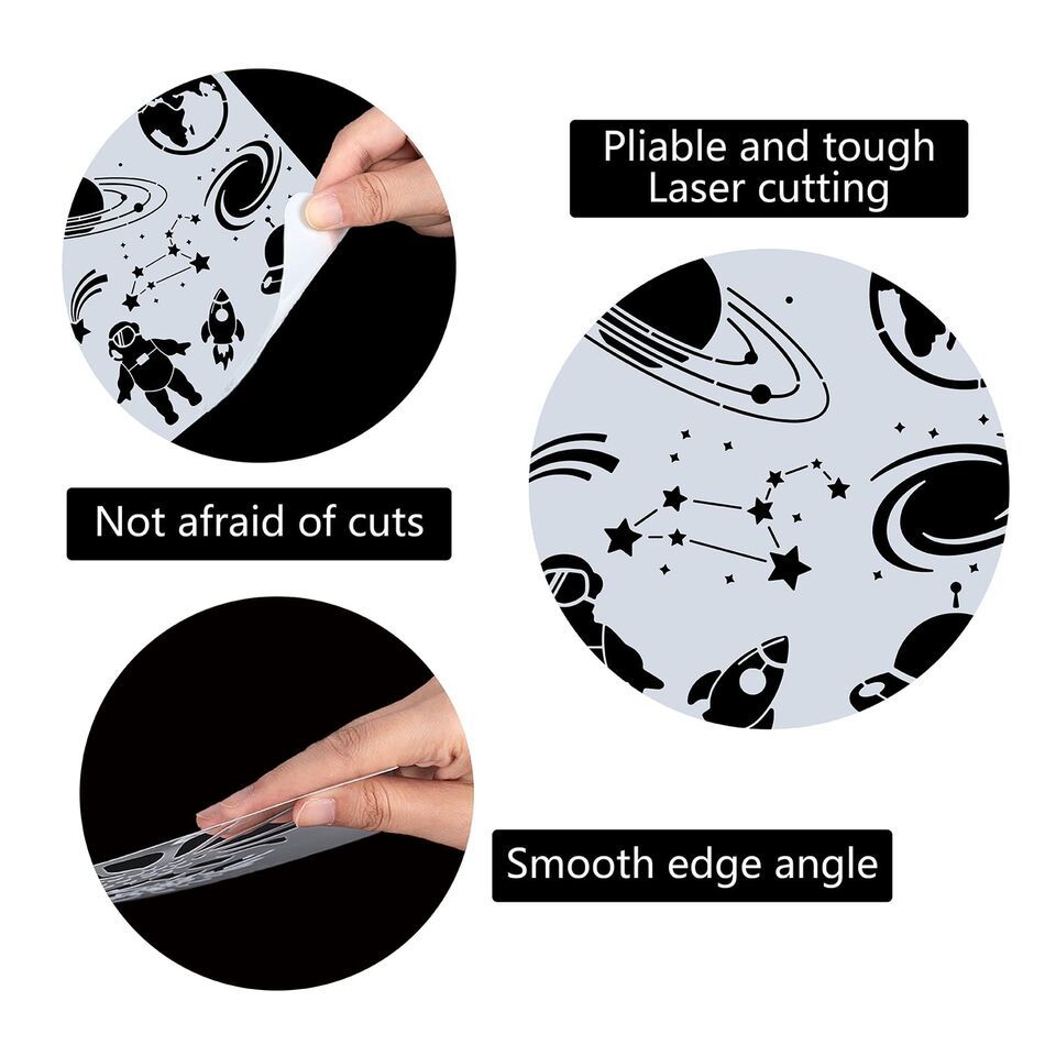 1. Space-inspired Design: Our template includes 1pc space theme stencils, featuring captivating images of galaxies, stars, and planets.