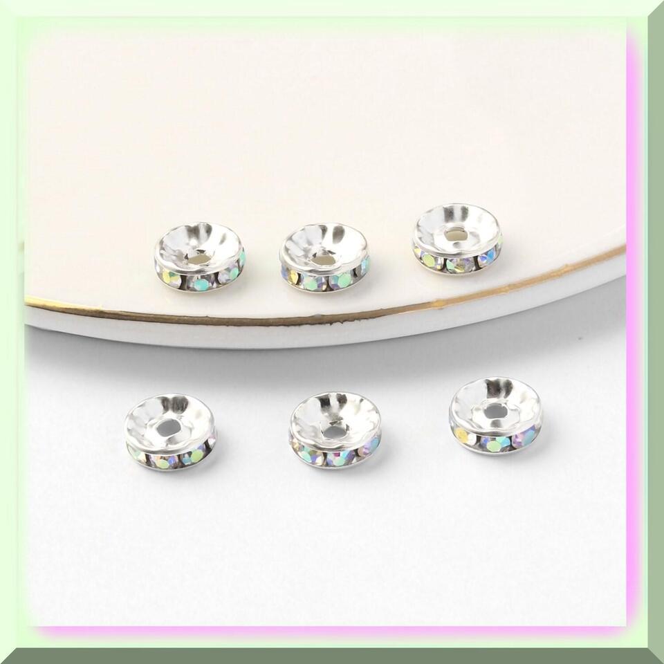 200Pcs 6mm Silver Plated Rhinestone AB Color Crystal Rondelle Spacer Beads - Ide