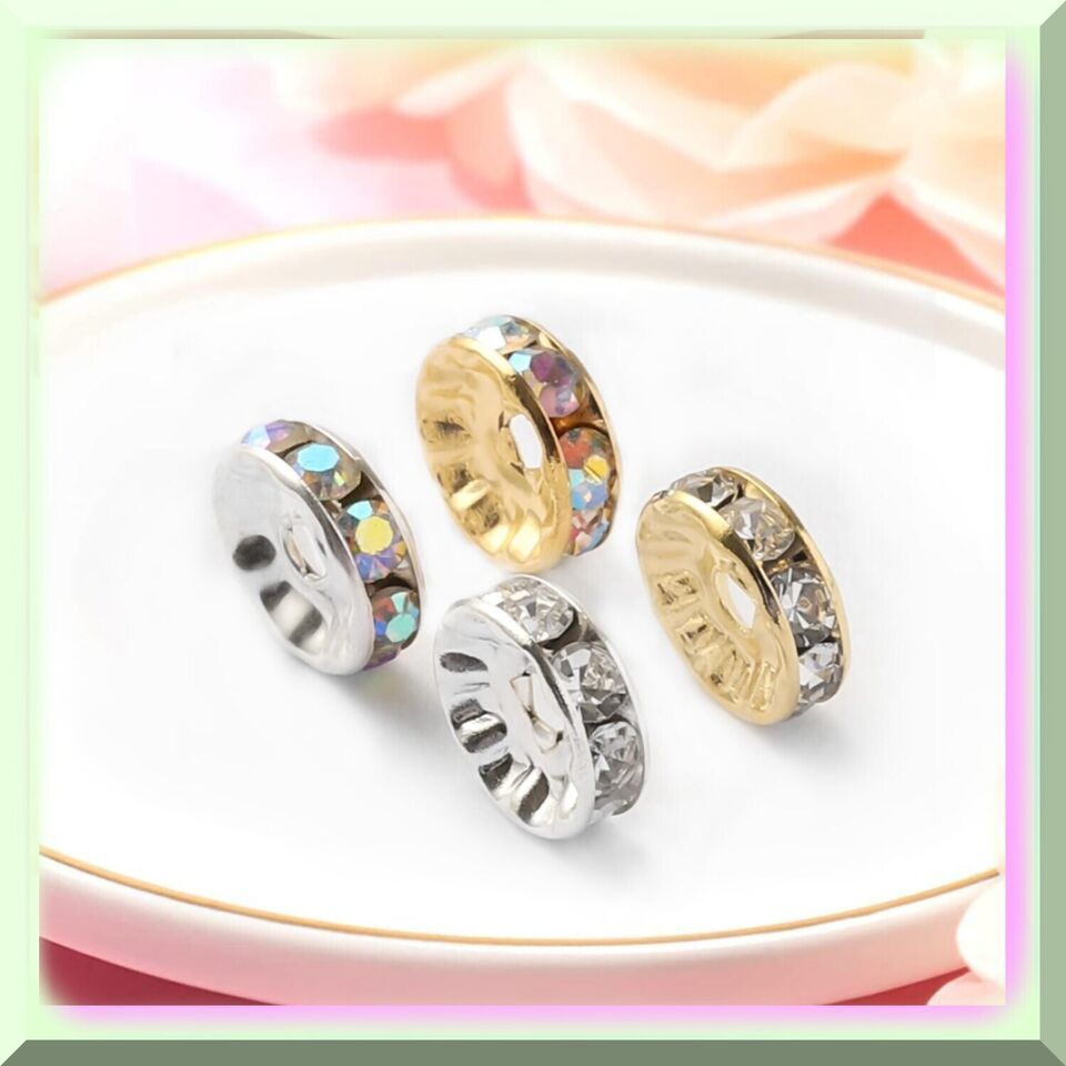 Our rondelle beads spacers are crafted with precision using high-quality rhinestones and a durable copper base. This ensures that they are not only visually appealing but also long-lasting. The large hole design of these beads allows for easy pairing with other beads such as pearls and diamond beads, giving you endless possibilities for creating unique and eye-catching jewelry pieces.