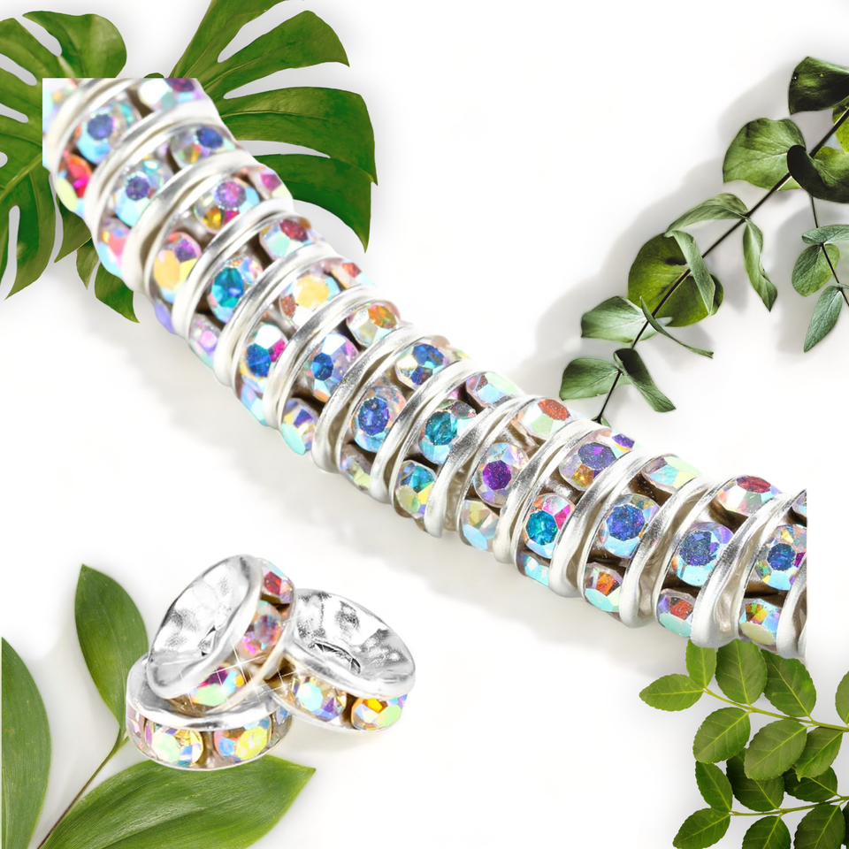 What sets our rhinestone spacer beads apart is the exquisite detailing. Each bead is adorned with mini rhinestones, adding a touch of sparkle and elegance to your creations. The beads are rich in color, featuring a mesmerizing multi-colored effect that is sure to catch the eye. Whether you're making bracelets, necklaces, or earrings, these beads will instantly elevate your designs and make them stand out.