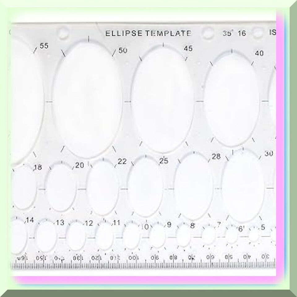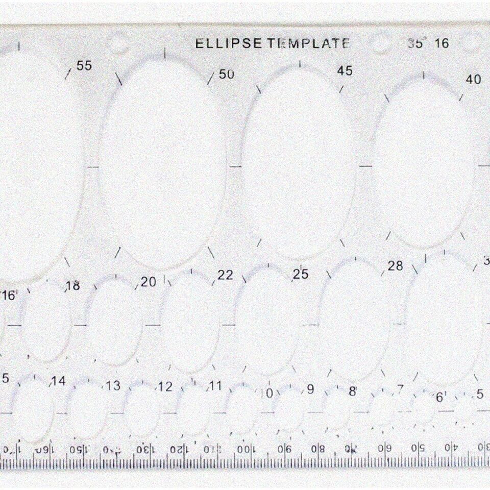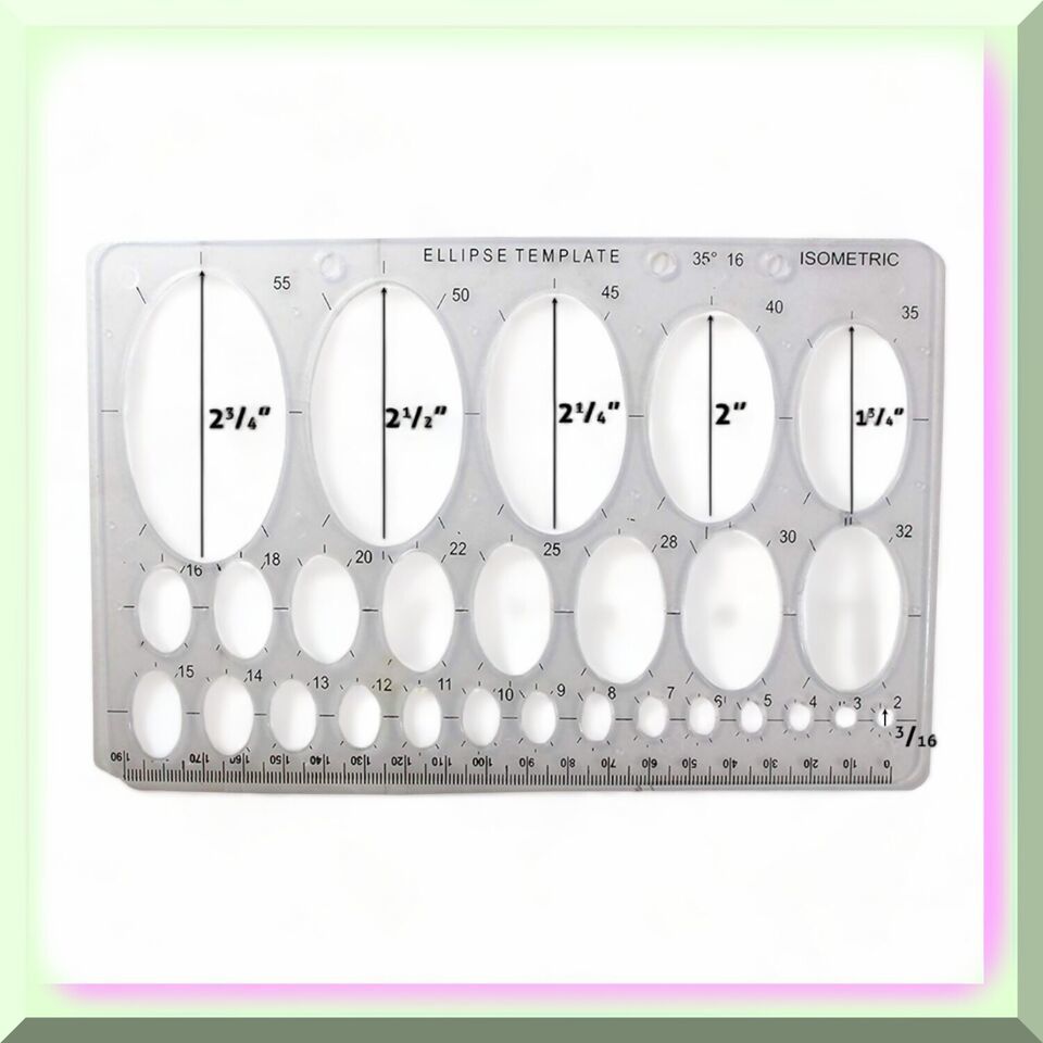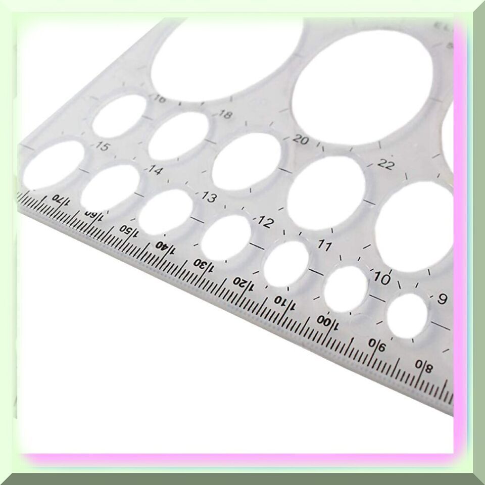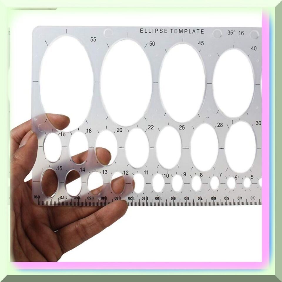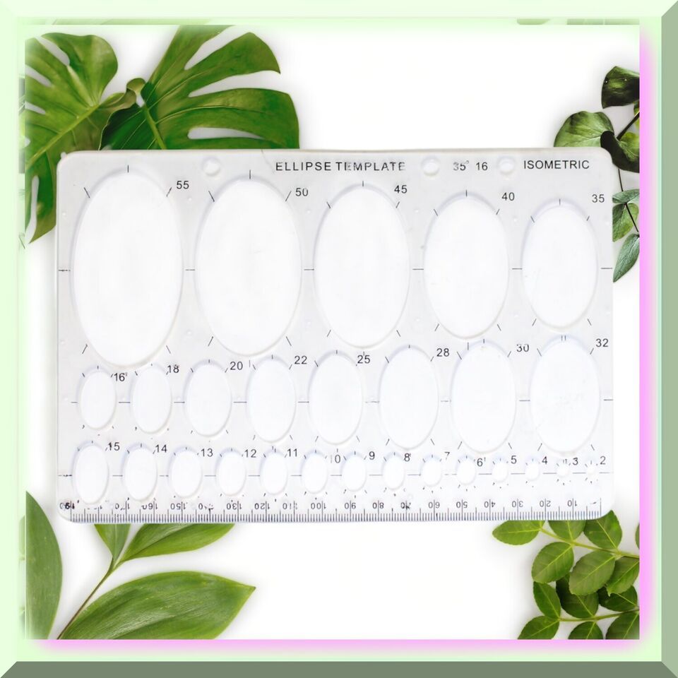Discover the versatile 8" X 5" Plastic Ellipse Template with a ruler edge, perfect for geometry and art classes. This essential tool offers 27 different ellipse sizes, ranging from 2mm to 55mm, and a 190mm ruler for precise measurements. Ideal for students, architects, designers, and engineers, this template fits neatly in any notebook or binder, making it a must-have for accurate and consistent ellipse and oval drawing.---FEATURES:---1. P - Perfect Ellipses: The clear ellipse oval drawing template guarantees flawless ellipses and ovals, allowing you to create artwork with unparalleled precision.