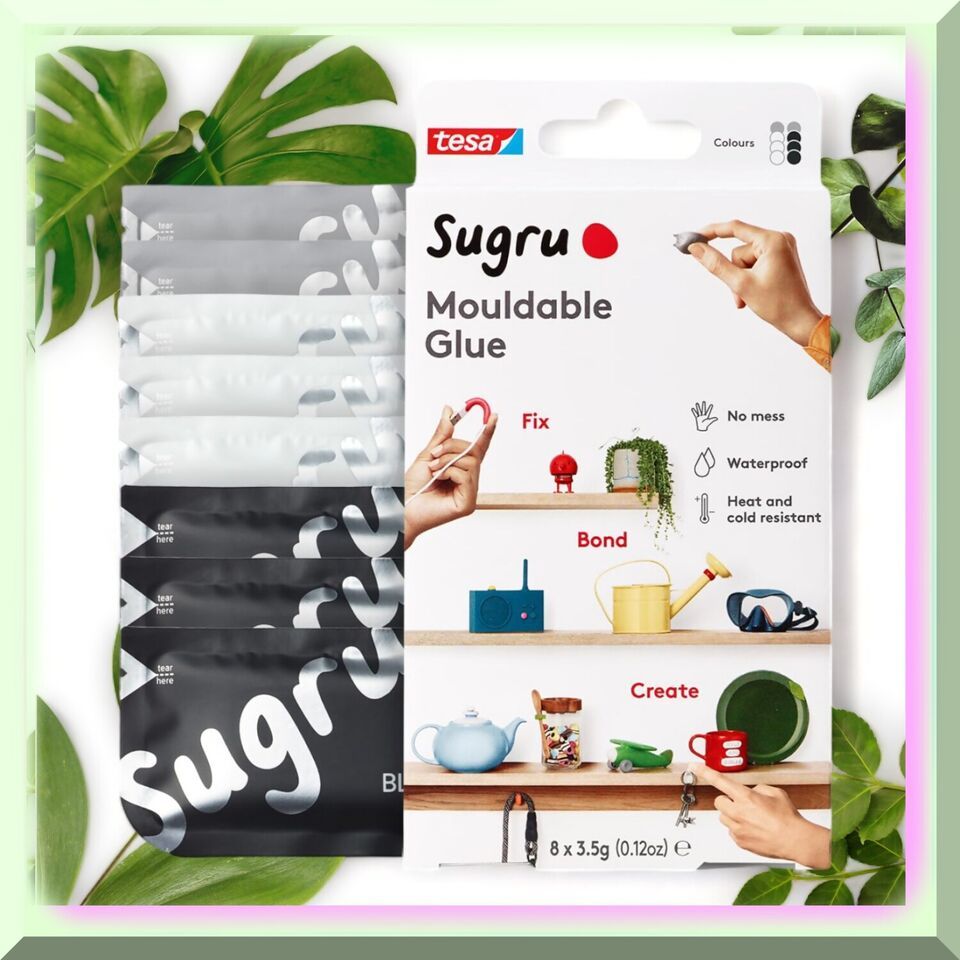 Introducing Moldable Say Hello to by tesa! This incredible product transforms into a resilient and flexible silicone rubber, thanks to its cutting-edge Advanced Silicone Technology. Moldable is like play-dough, soft and malleable, allowing you to roll, press, and mold it into any shape you desire. With a generous 30-minute window, you can repair, bond, seal, mount, modify, create, decorate, improve, upcycle, and even personalize to perfection. And if you change your mind, simply remove it from non-porous surfaces using a knife or scalpel. The possibilities are endless with this versatile and user-friendly repair putty. From fixing frayed charger cables and broken zippers to re-attaching and rebuilding missing parts on various items, Moldable is your go-to solution. It can even make things scratch-proof, like protective rubber feet for chairs or restoring seals on appliances. Plus, it's non-toxic and mess-free, making it safe to use with children over the age of three. But wait, there's more! Moldable is also UV and rain/humidity resistant, making it perfect for indoor and outdoor improvements. Whether you're fixing things in the garden or sealing leaky hiking boots, this product excels with its weatherproof and waterproof features. It can even withstand challenging environments like wet bathrooms or kitchen sink areas. Not only that, but Moldable is temperature-resistant and incredibly strong, capable of holding up to 4.4lb with just one single-use pack, making it ideal for mounting without drilling. Just remember to exercise caution when dealing with electricity, sticking to small consumer electronics repairs with low current and below 24 volts. And for load-bearing projects, allow up to 48 hours for Moldable to fully set, depending on the thickness of the application. So, when will you start your next project? -------- FEATURES:------- A) Moldable Magic: Unleash the power of our revolutionary moldable all-purpose repair! With its groundbreaking formula, you can effortlessly shape, mold, and sculpt it to your heart's desire. Say goodbye to rigid solutions and embrace the flexibility of our one-of-a-kind creation.