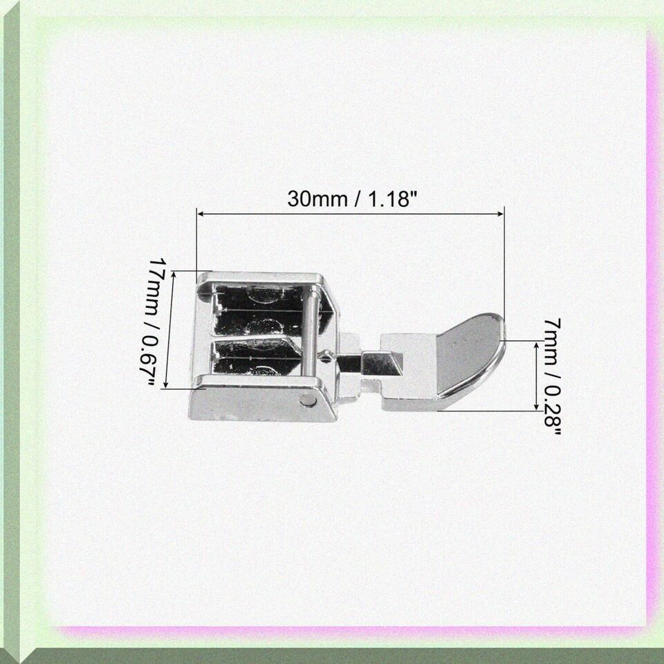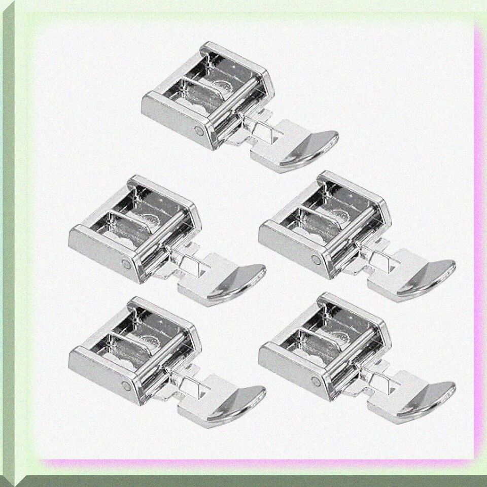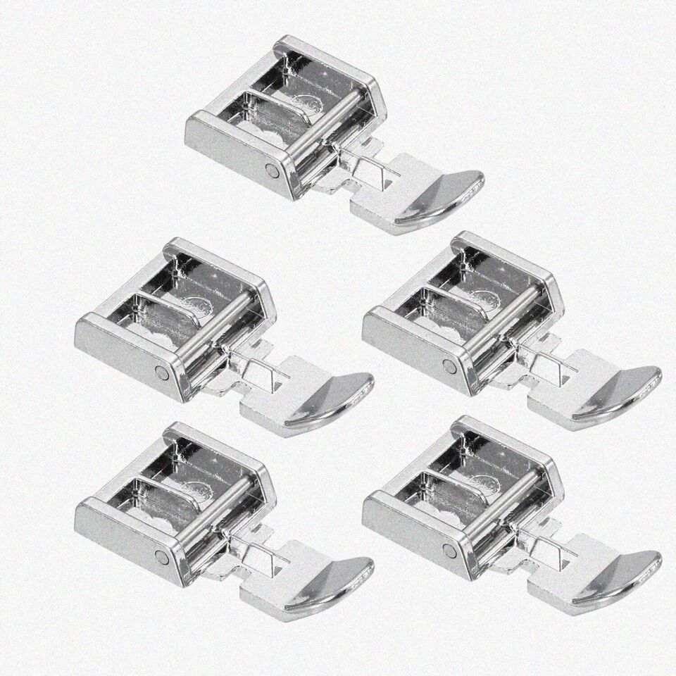 Upgrade your sewing game with our Universal Stainless Steel Presser Foot Set! Perfect for both beginners and pros, these durable, rust-resistant feet fit most household and vintage sewing machines. Effortlessly fold thick fabric edges and keep your projects flat and flawless. Compact and lightweight, they're easy to carry and store. Simplify tedious tasks and boost efficiency with this essential sewing accessory. Includes 5 presser feet. Model: 7306. Get ready to sew like a pro! ==== FEATURES: ==== (A) **Unyielding Durability**: Crafted from premium stainless steel, our presser foot stands as a paragon of resilience. This robust material ensures that your sewing companion remains steadfast and reliable, resisting rust and wear over time. Say goodbye to frequent replacements and hello to a long-lasting partnership in your creative journey.