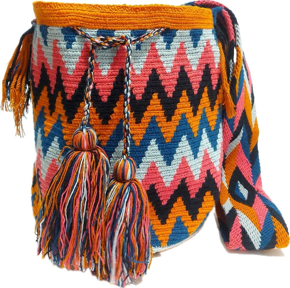 Product description: Immerse yourself in the vibrant and intricate artistry of the Wayuu tribe with this stunning crochet tote bag. Handcrafted by skilled artisans in Colombia, each bag is a unique masterpiece, meticulously woven with vibrant colors and intricate patterns that tell a story of tradition and culture. The sturdy cotton fibers and tight crochet stitches ensure durability, making it the perfect companion for your daily adventures or beach getaways. With its roomy interior and comfortable strap, this tote bag effortlessly combines functionality and style. Embrace the beauty of indigenous craftsmanship and add a touch of bohemian flair to your wardrobe with this one-of-a-kind Wayuu mochila bag. Approximate dimensions: 13 inches x 11 inches x 6 inches (34 cm x 30cm).
