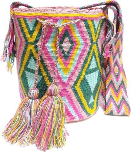 Product description: Immerse yourself in the vibrant and intricate artistry of the Wayuu tribe with this stunning crochet tote bag. Handcrafted by skilled artisans in Colombia, each bag is a unique masterpiece, meticulously woven with vibrant colors and intricate patterns that tell a story of tradition and culture. The sturdy cotton fibers and tight crochet stitches ensure durability, making it the perfect companion for your daily adventures or beach getaways. With its roomy interior and comfortable strap, this tote bag effortlessly combines functionality and style. Embrace the beauty of indigenous craftsmanship and add a touch of bohemian flair to your wardrobe with this one-of-a-kind Wayuu mochila bag. Approximate dimensions: 13 inches x 11 inches x 6 inches (34 cm x 30cm).