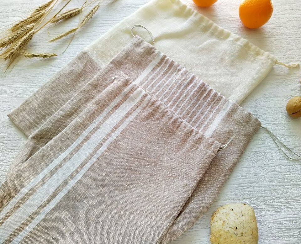 Linen Storage Bags for Homemade Bread Reusable Food Storage Drawstring Bags