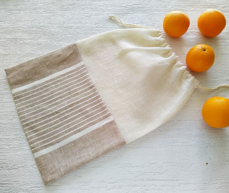 Linen Food Storage Bags - Eco friendly Reusable Produce Drawstring