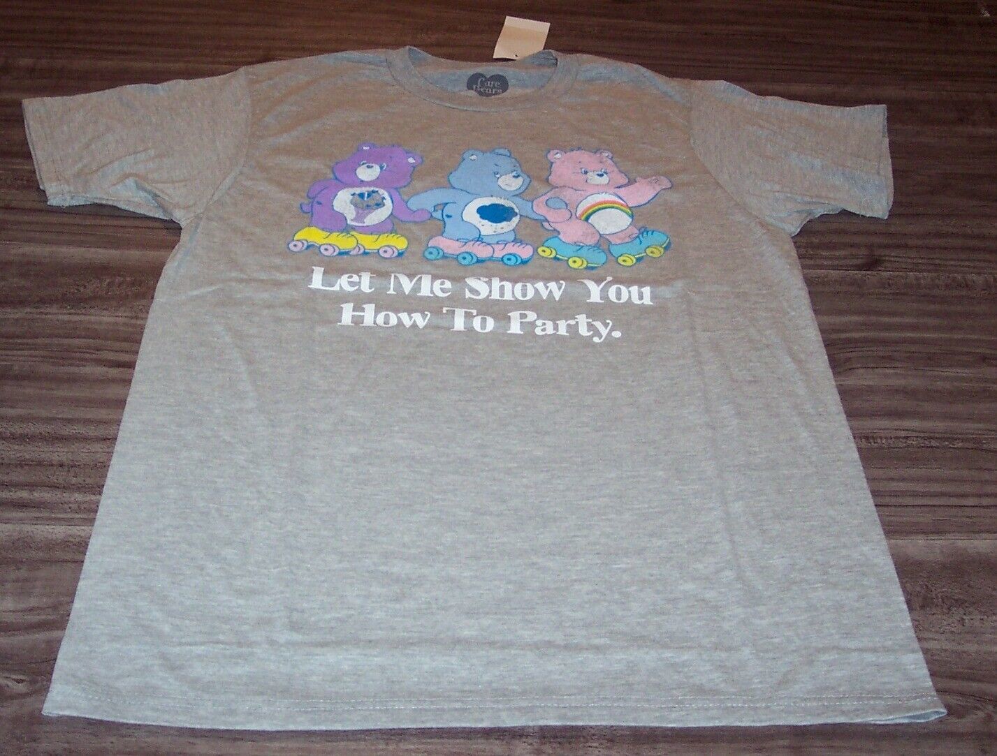 This is a Vintage Style CARE BEARS "LET ME SHOW YOU HOW TO PARTY" Share Bear Cheer Bear Grumpy Bear T-shirt. It is a size MEDIUM, and it is NEW with the tag. It is 19 1/2 inches from armpit to armpit and 29 inches in length. Combine auctions to save on shipping. D3AD