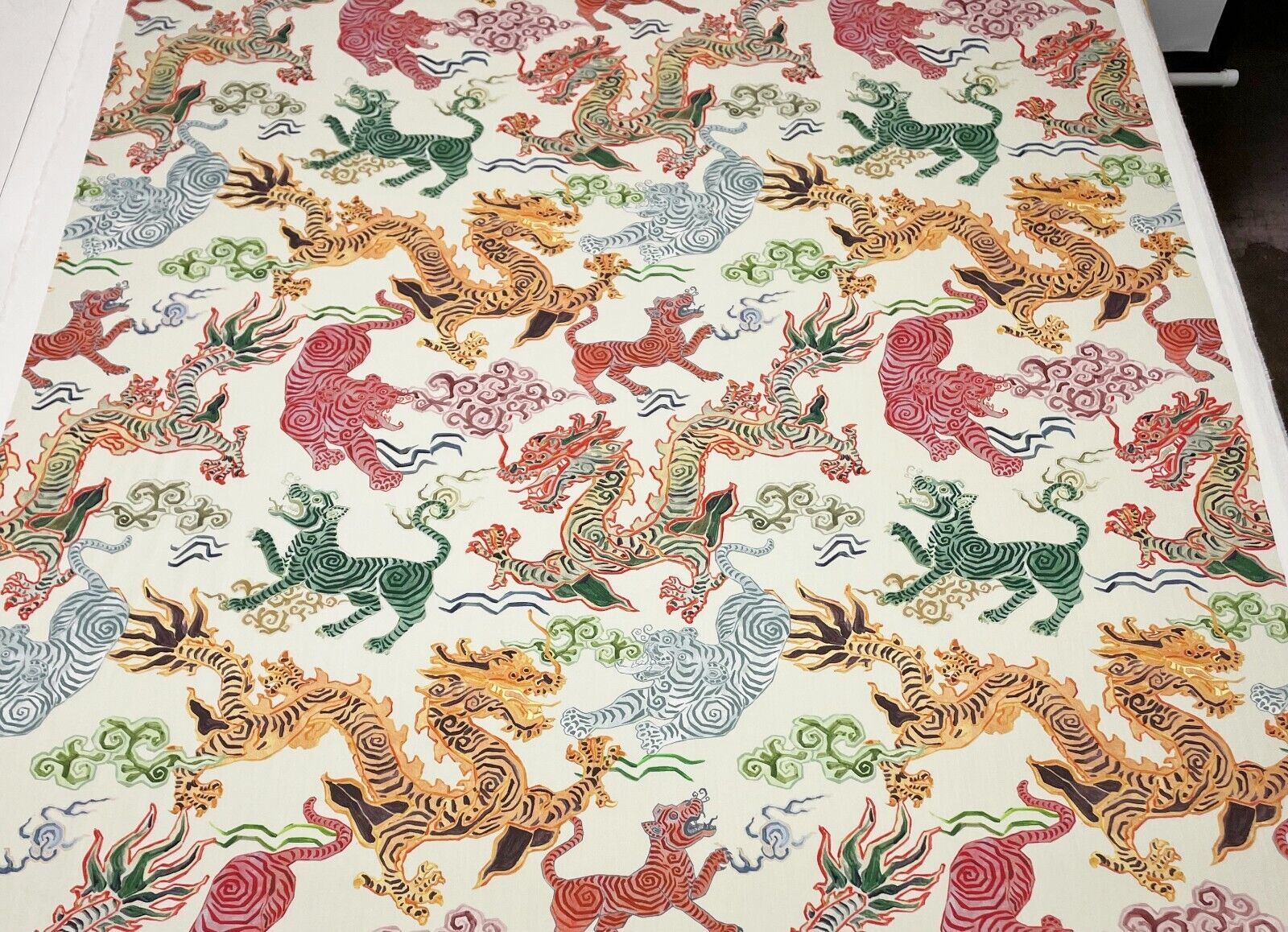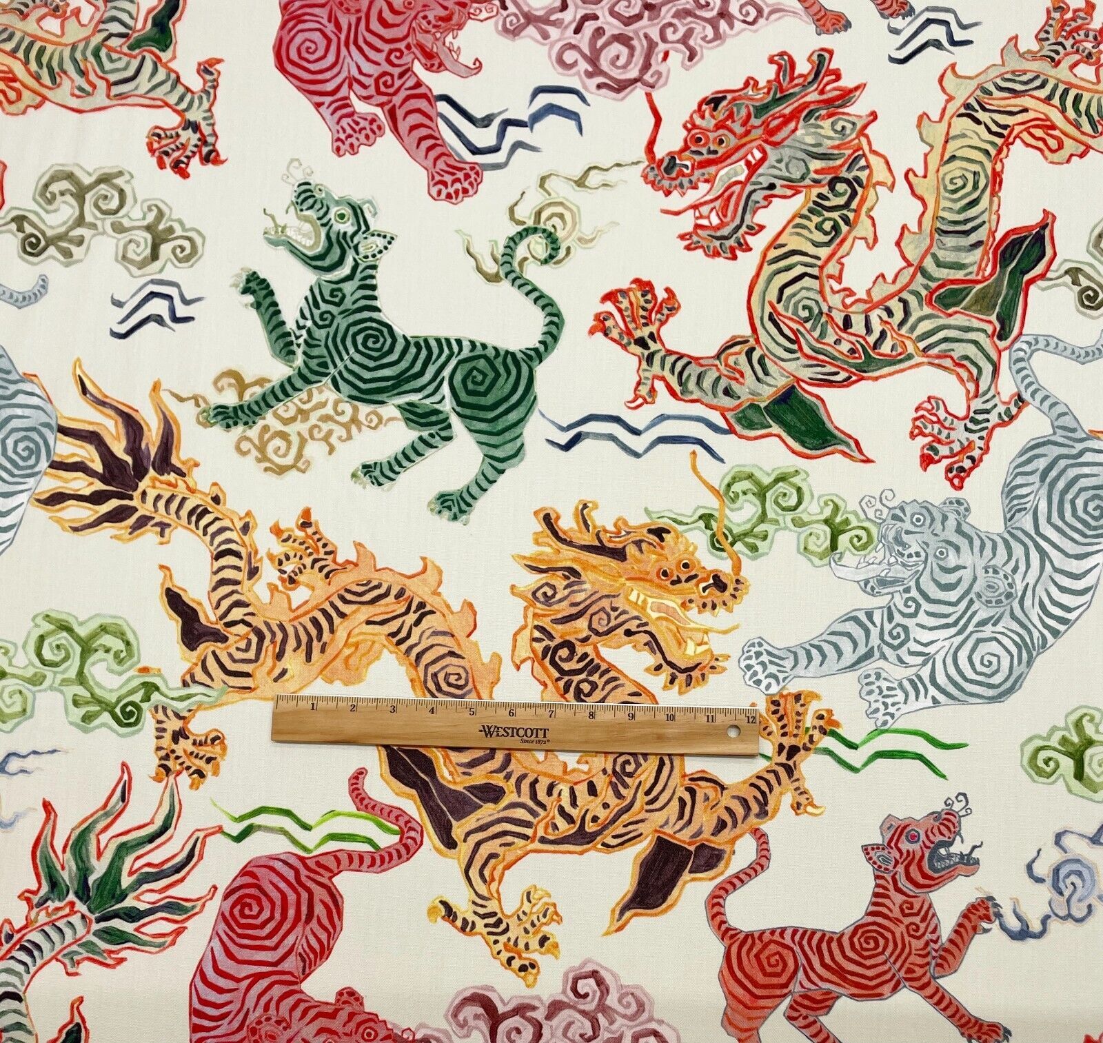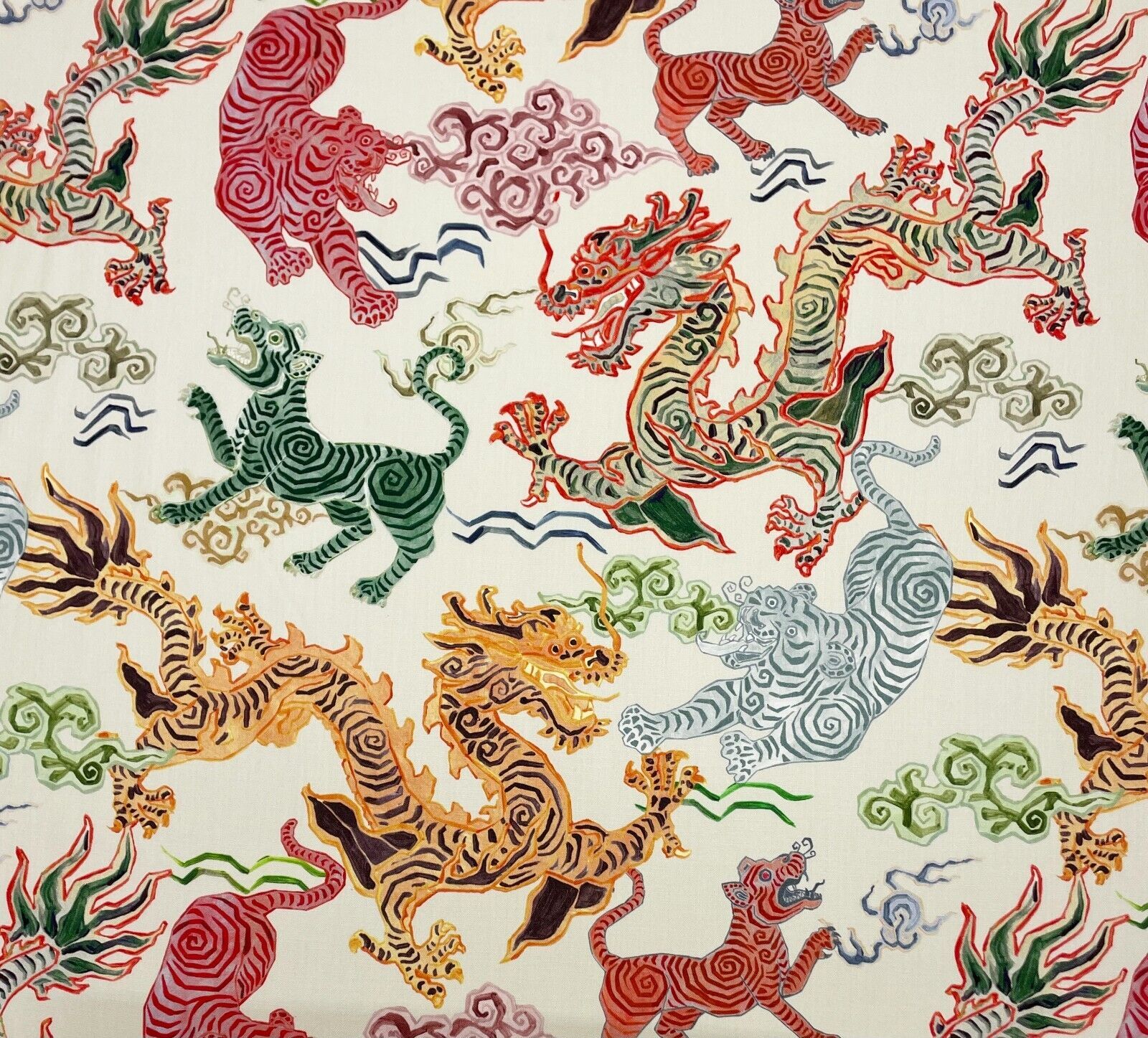 HAMILTON HIMALAYA NATURAL ASIAN TIGERS DRAGONS MULTIUSE FABRIC BY THE YARD 54"W
