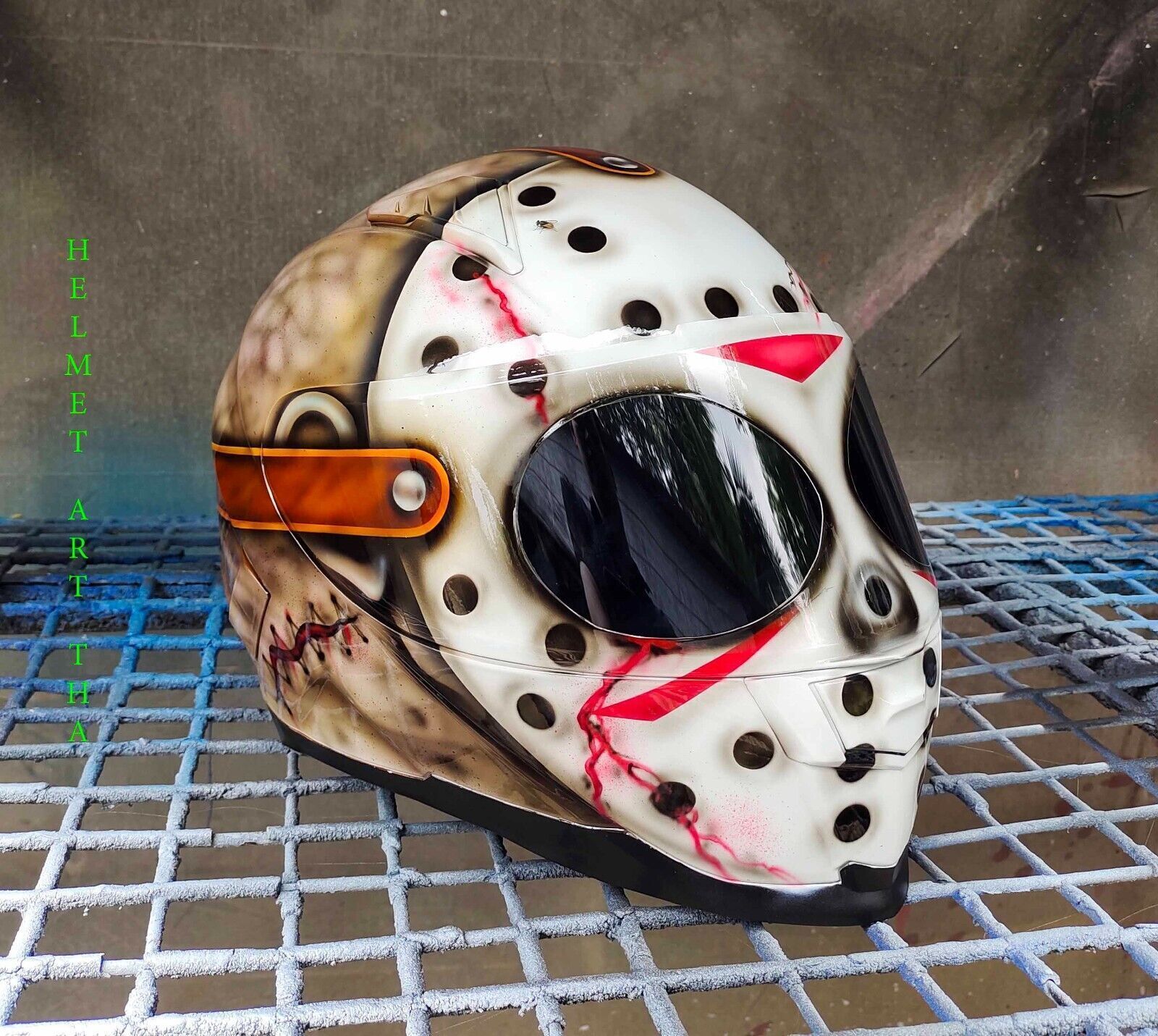 Casque de moto integral peint a l'aerographe personnalise