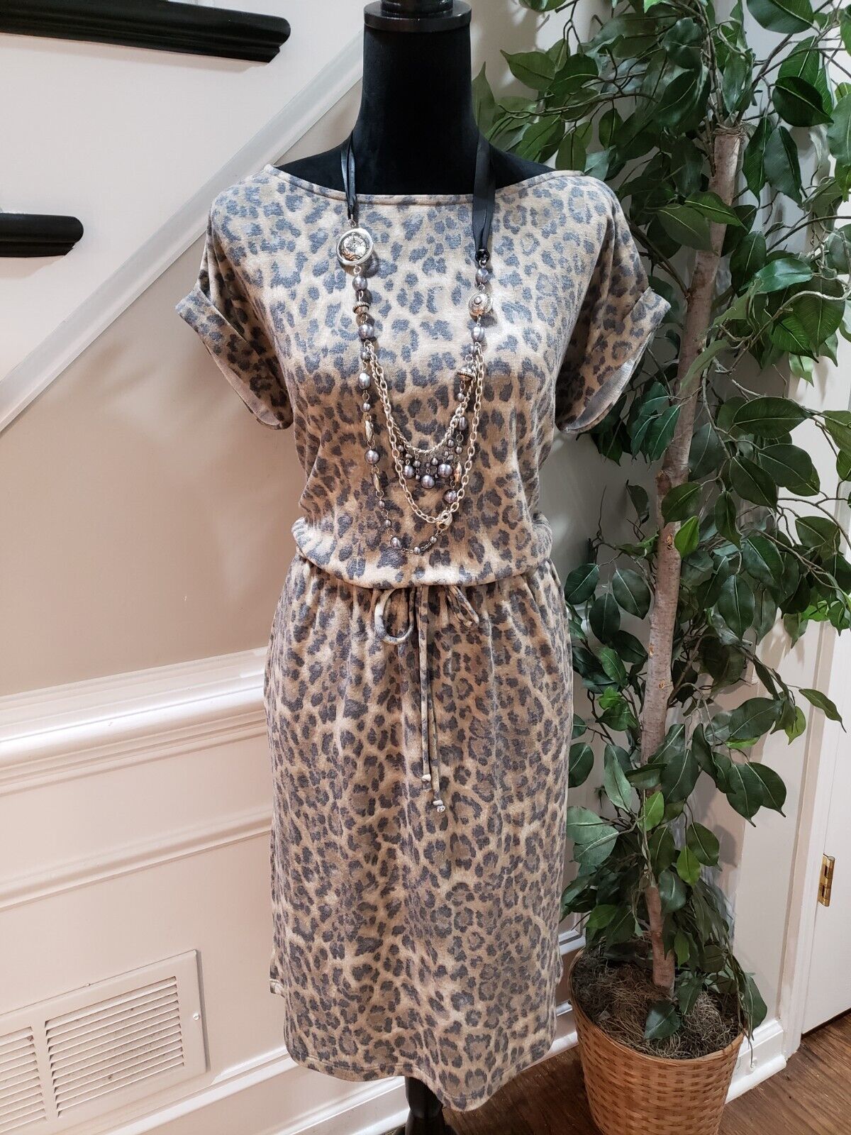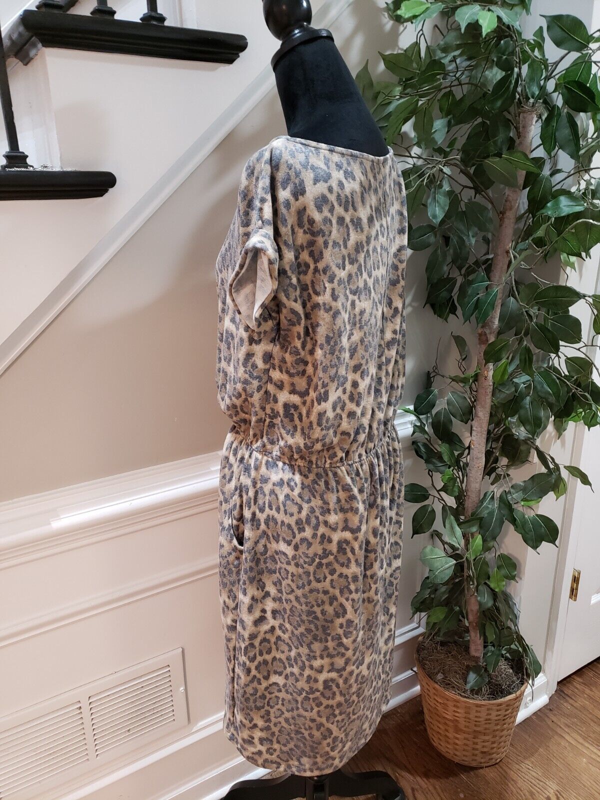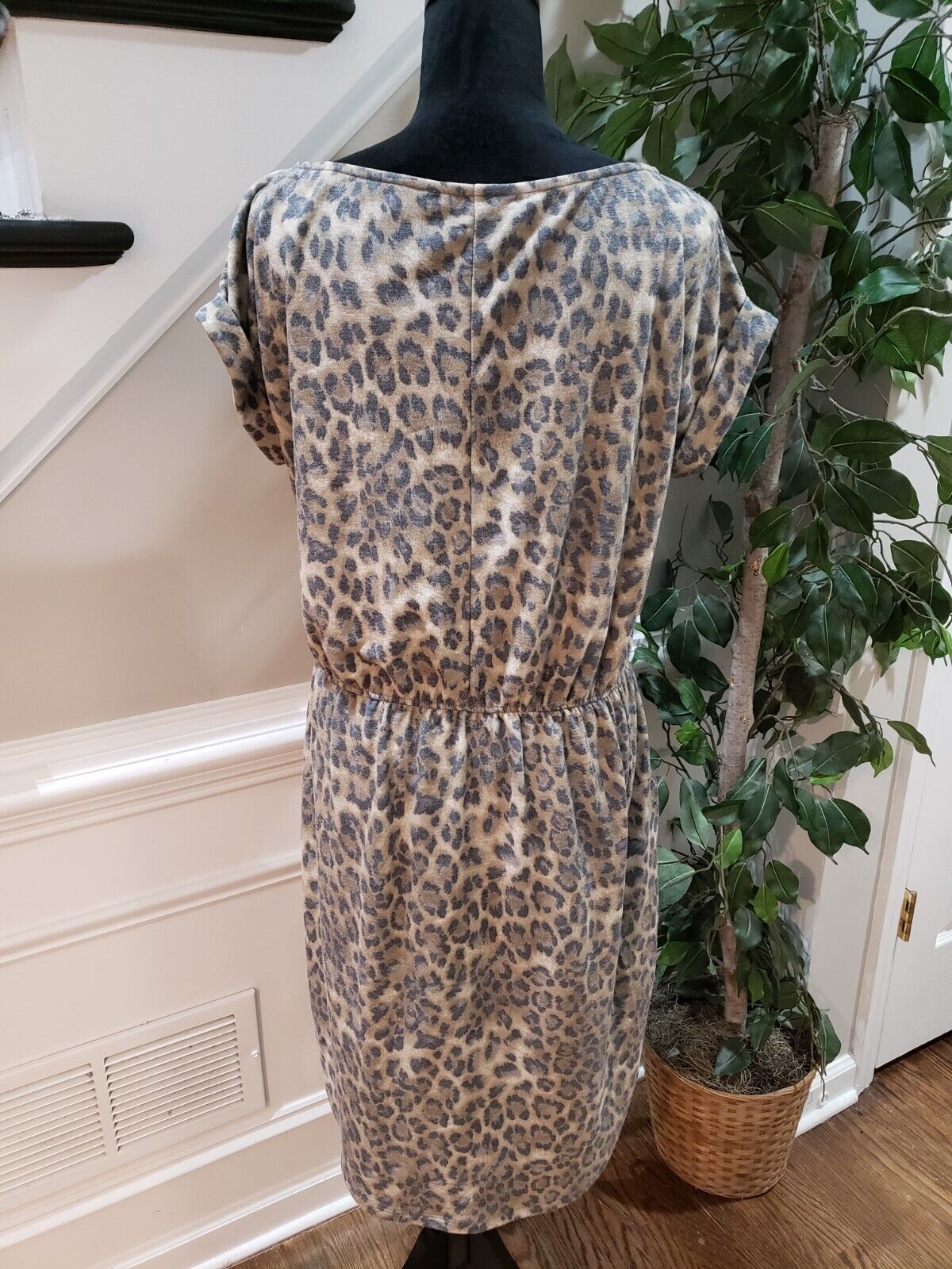Chris Carol Womens Brown Leopard Print Tie Waist Boat Neck Sheath Dress Size L.