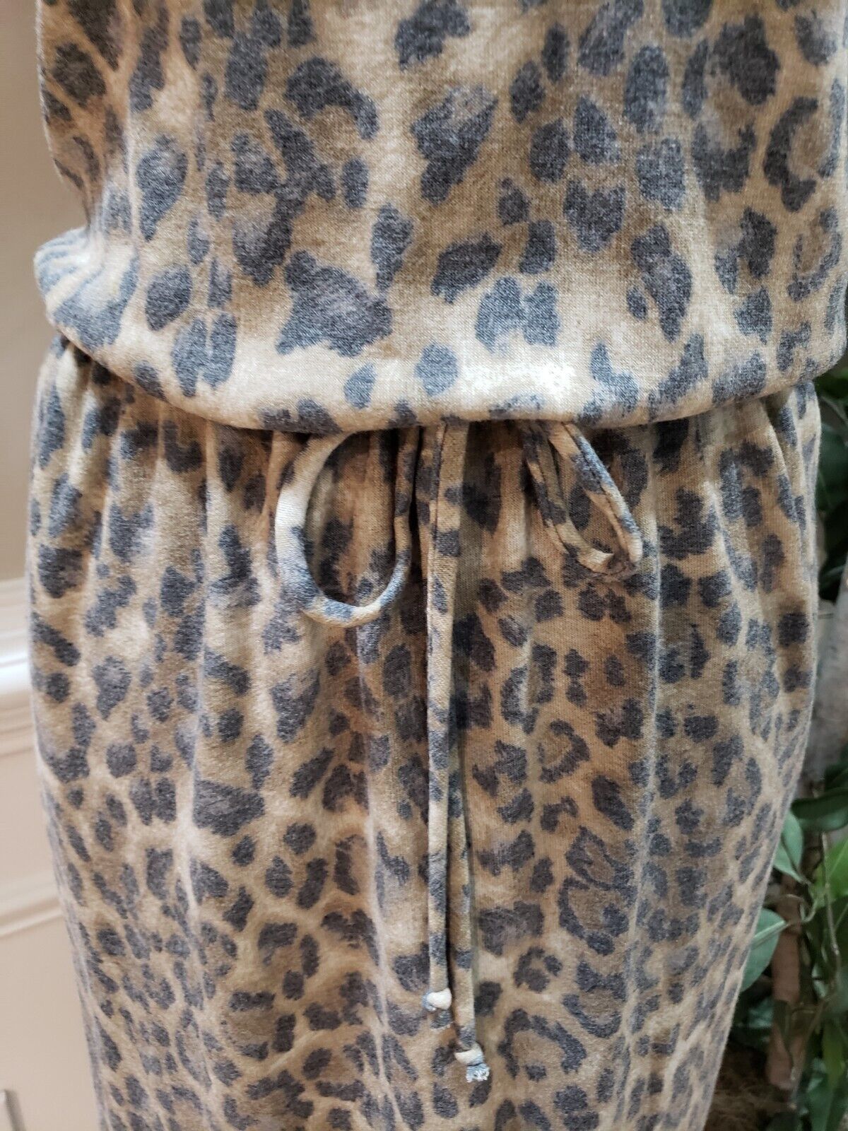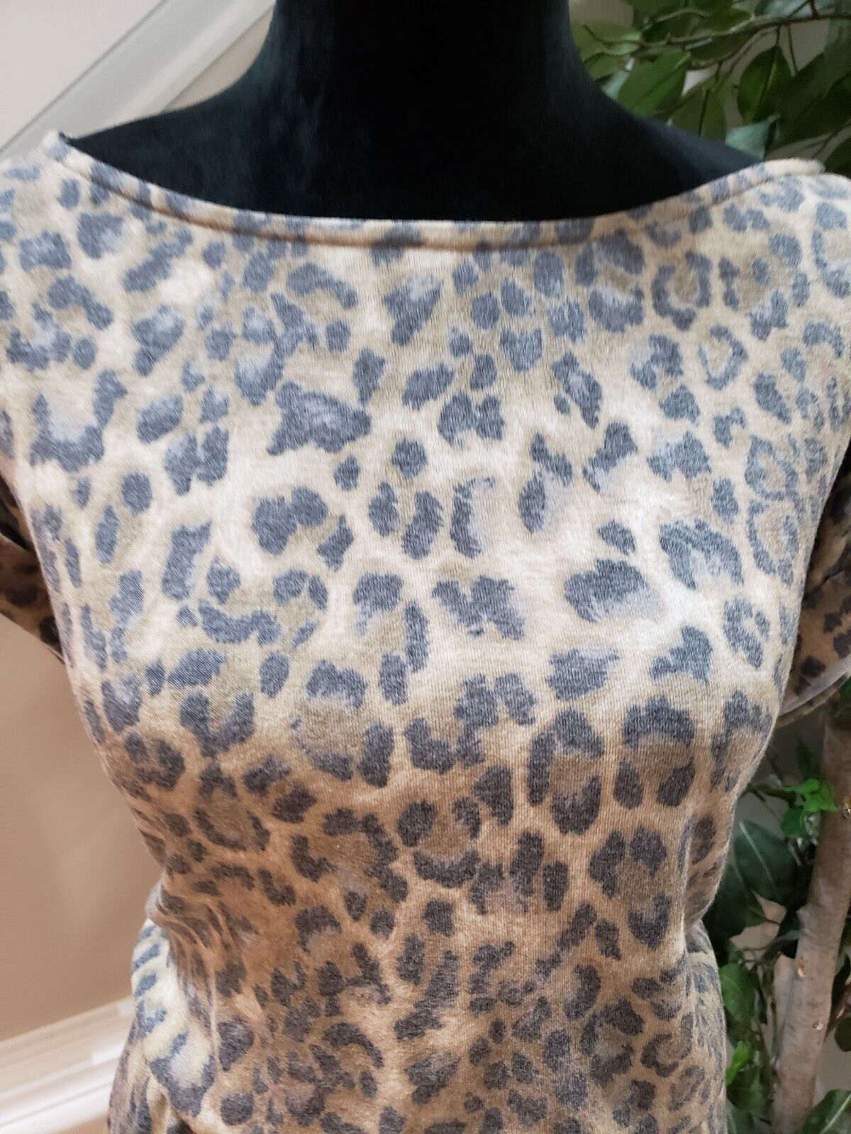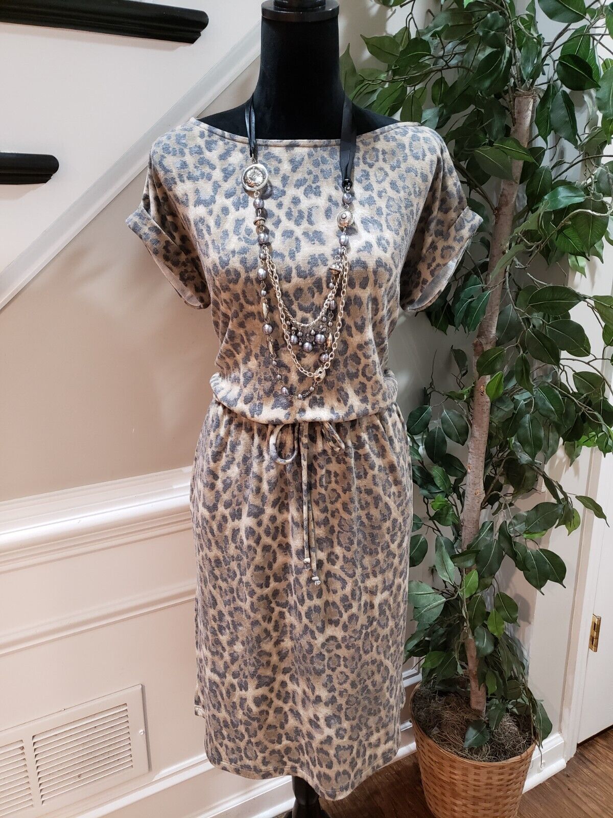 Chris Carol Womens Brown Leopard Print Tie Waist Boat Neck Sheath Dress Size L.