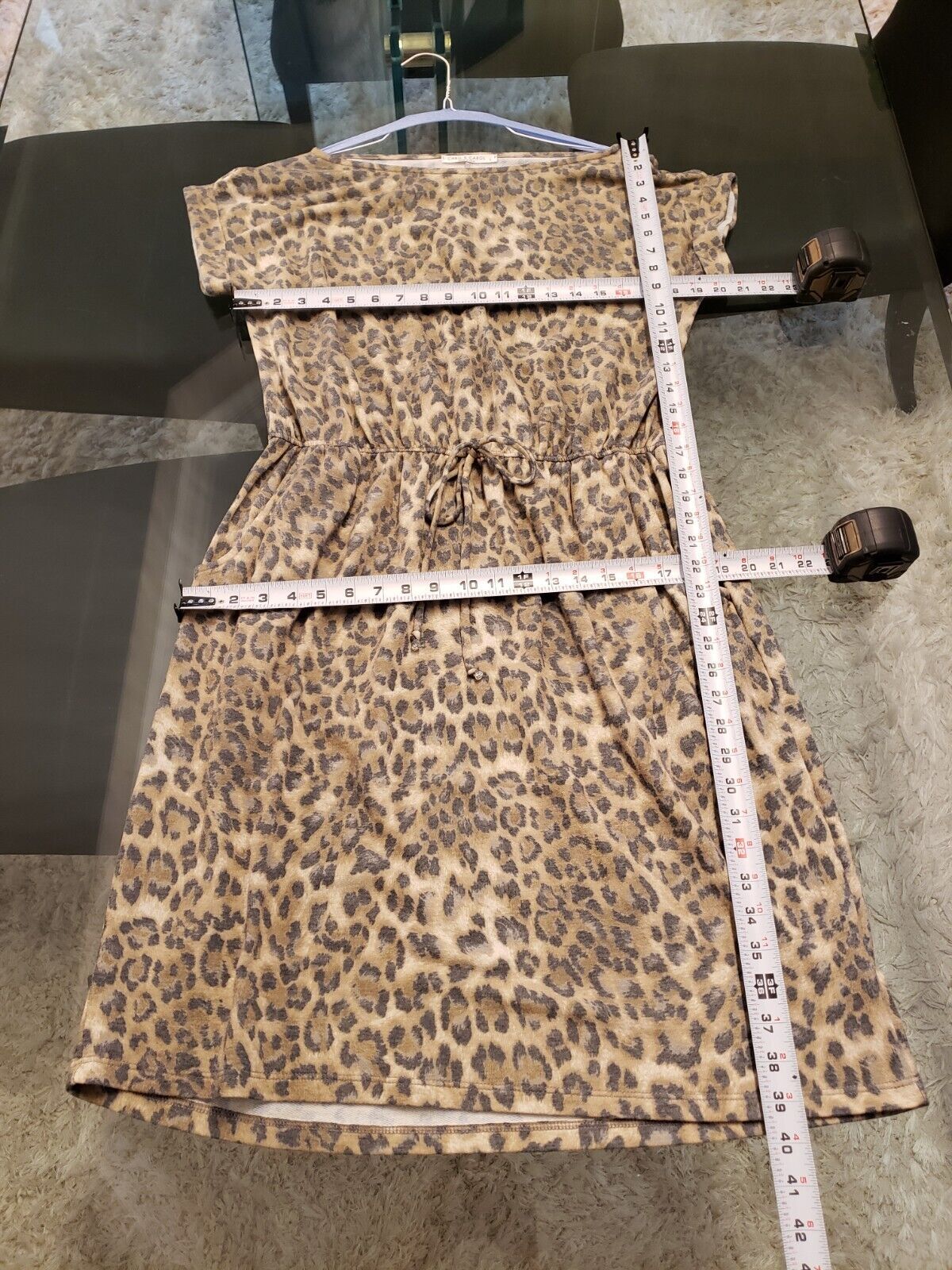 Chris & Carol Womens Brown Leopard Print Tie Waist Boat Neck Sheath Dress Size L
