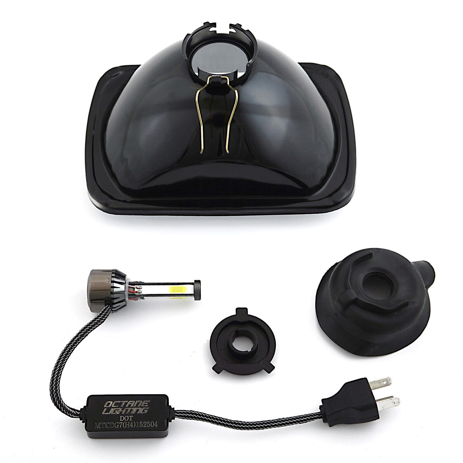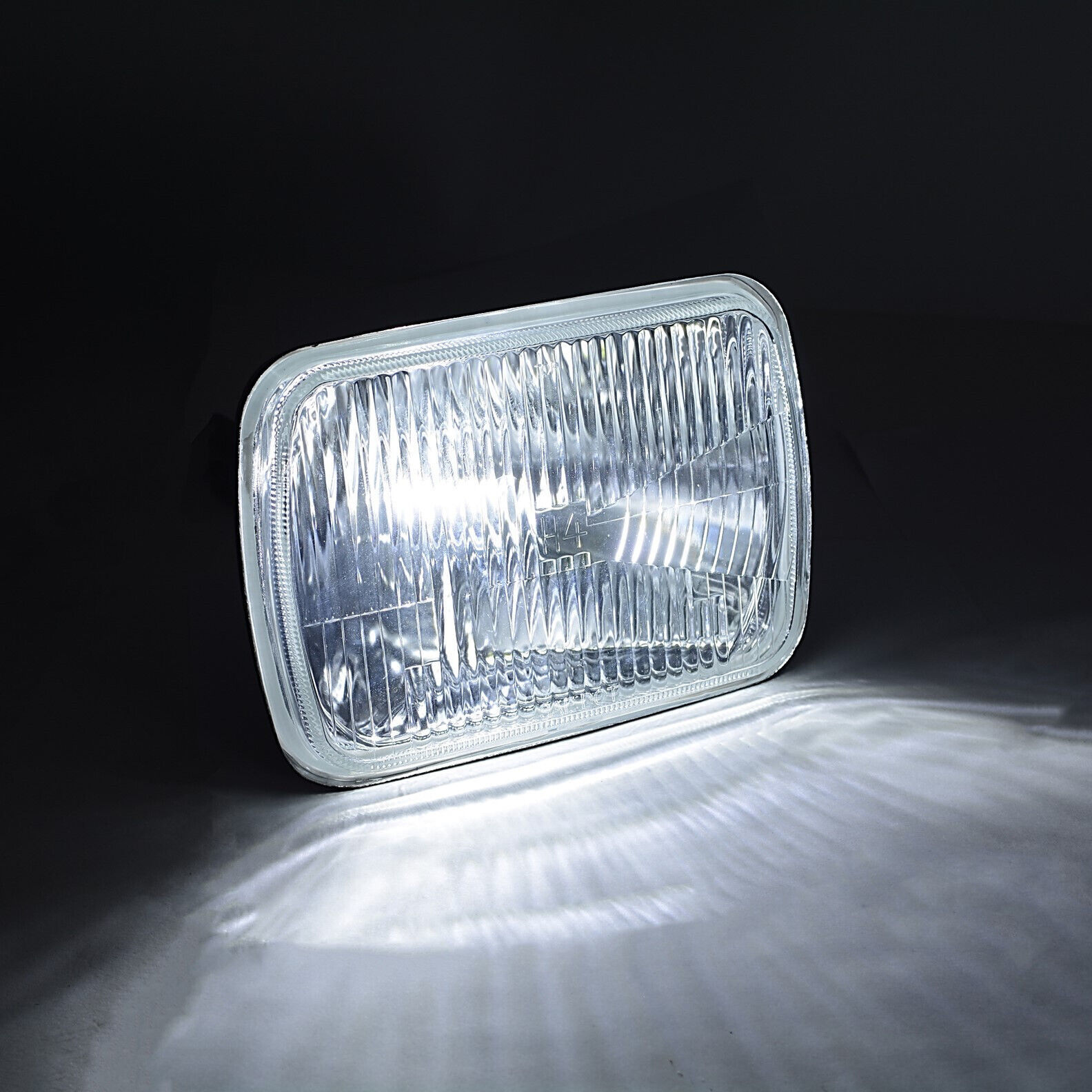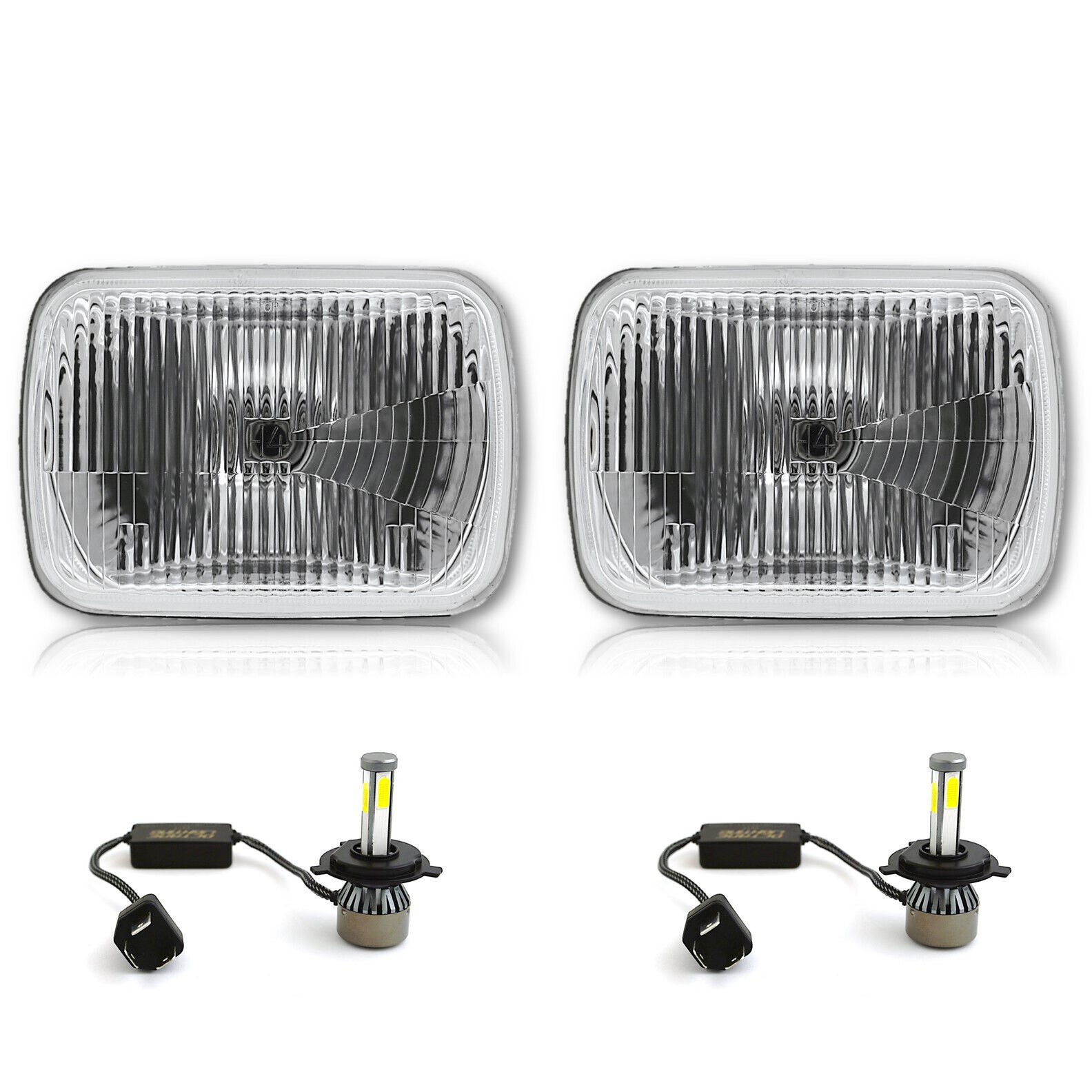 7X6 LED Stock Style Glass Lens Metal Headlight 4000Lm H4 Lamp Bulb Headlamp Pair