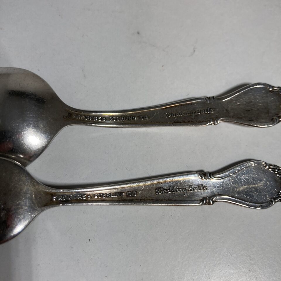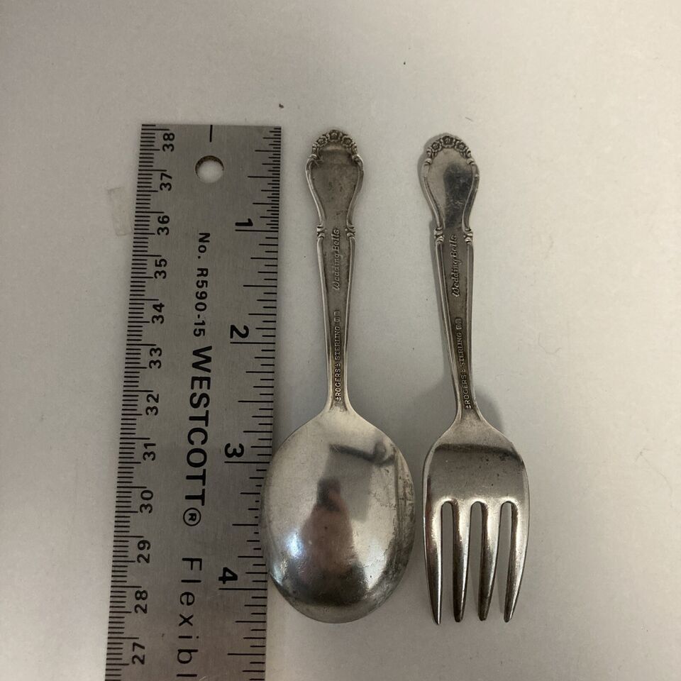Rogers Sterling Silver “Wedding Bells” Baby Fork And Spoon Set No Mono 4.25”