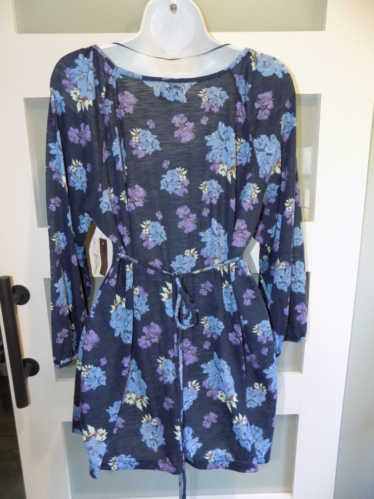FADED GLORY Navy Blue Floral Knit Peasant LS Tunic Top XXL (20) Women's NEW