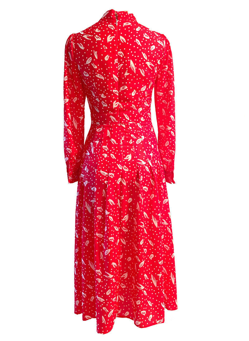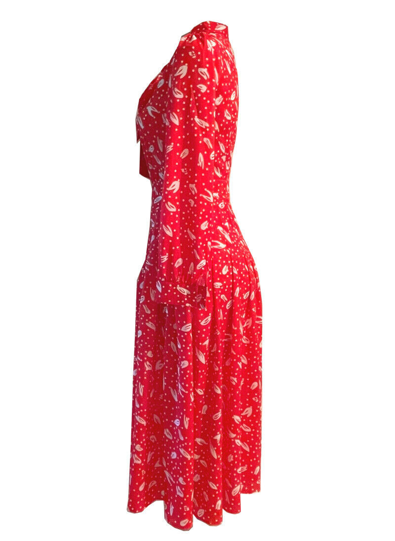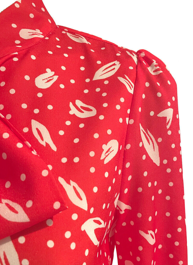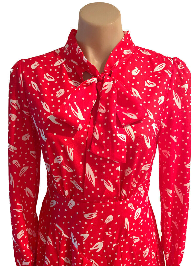 Kate Middleton Inspired Red Ruffle Shoulder Pussy-bow Polka Dot Print Midi Dress