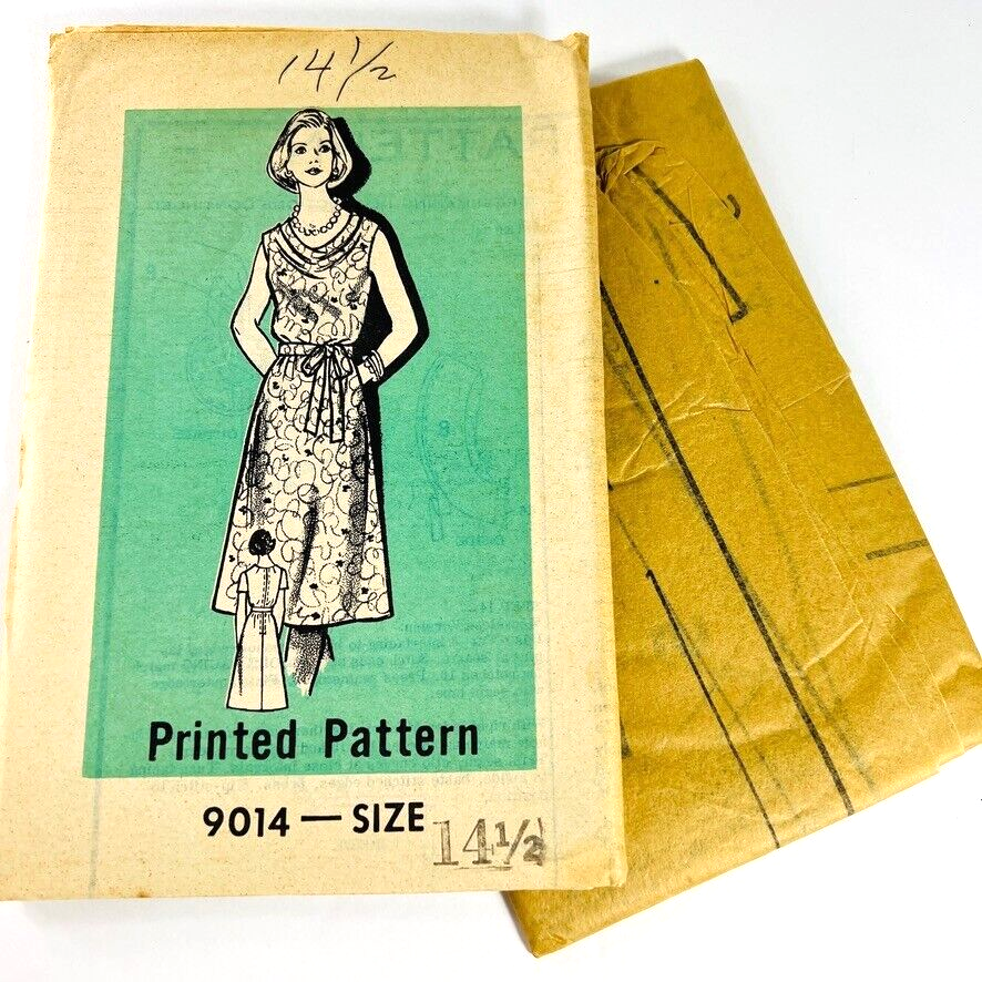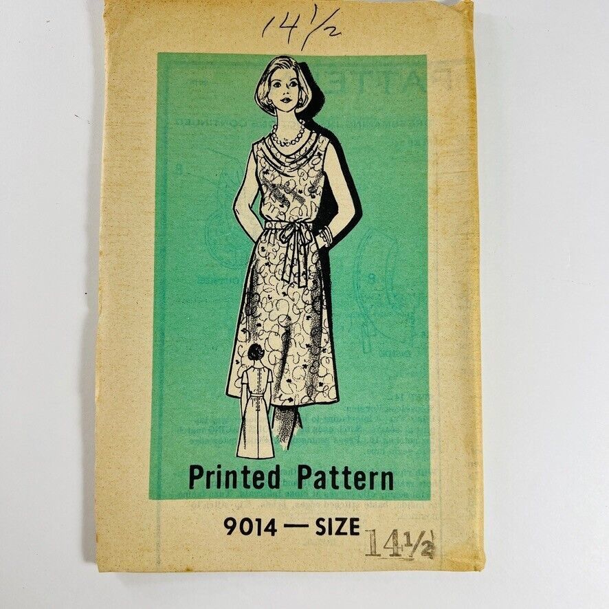 Vintage Mail Order Sewing Printed Pattern Dress Sz 14.5 Factory Folded 9014