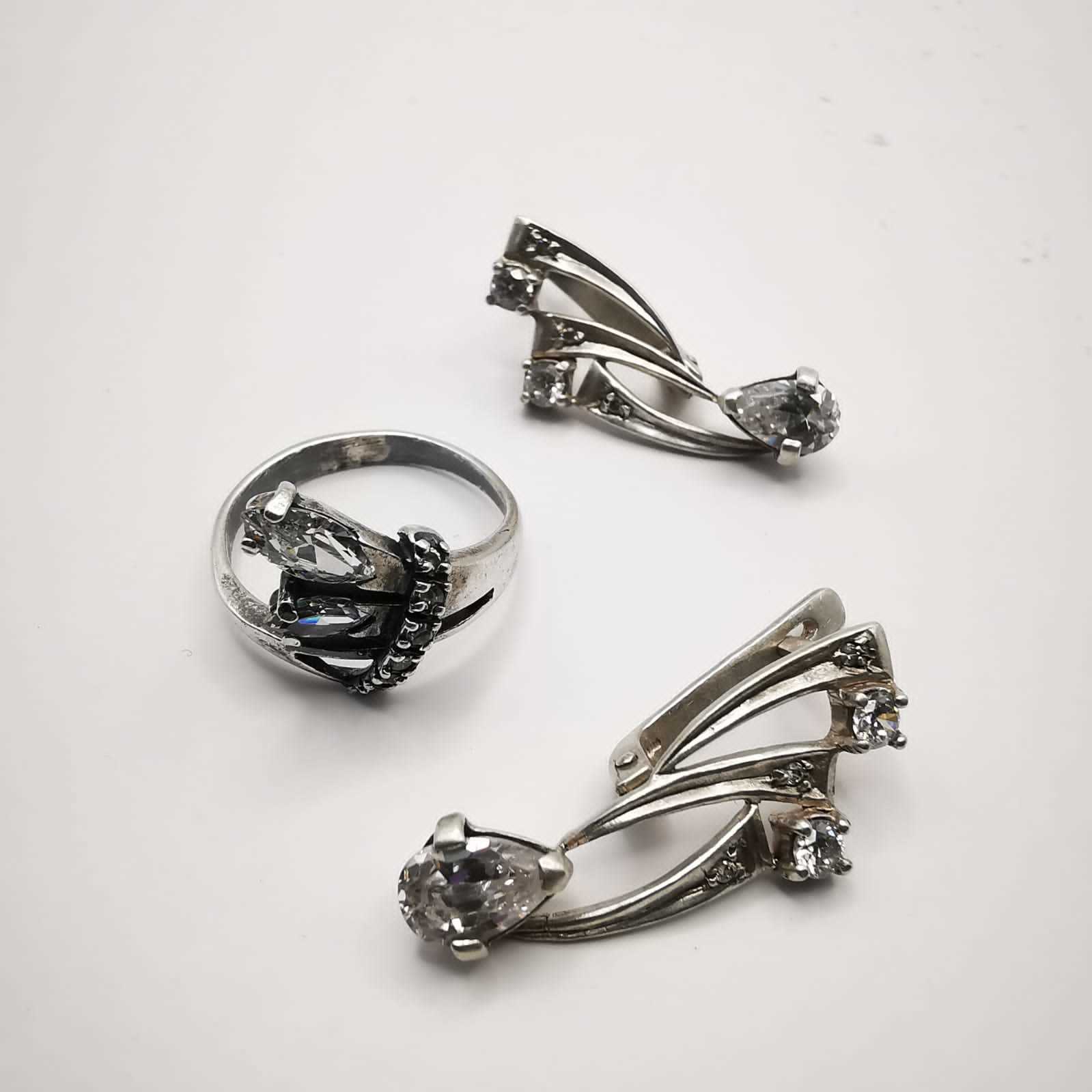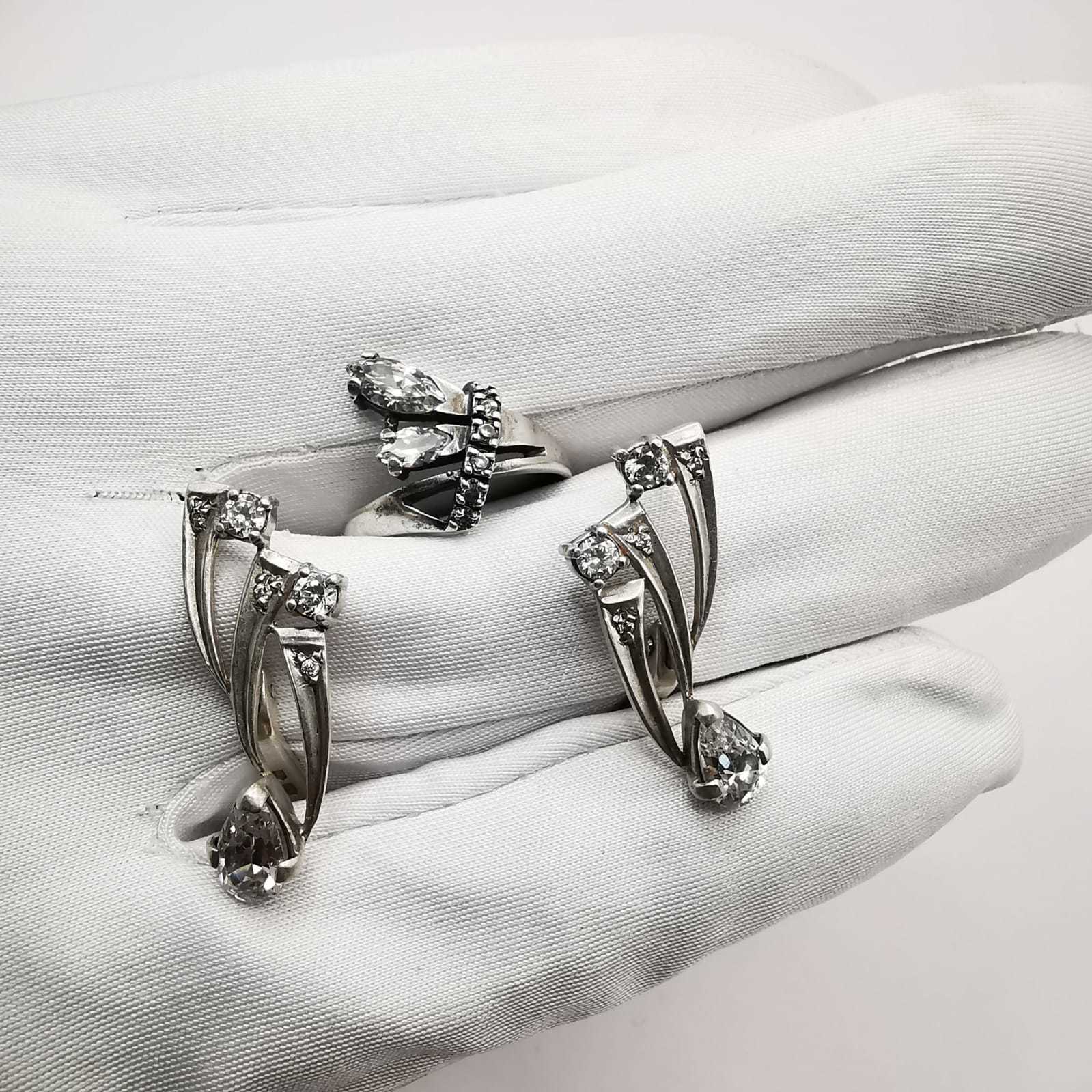 Vintage Women's Set, Earrings,Ring,925 Sterling Silver,Jewelry,Zirconia 8,5 g