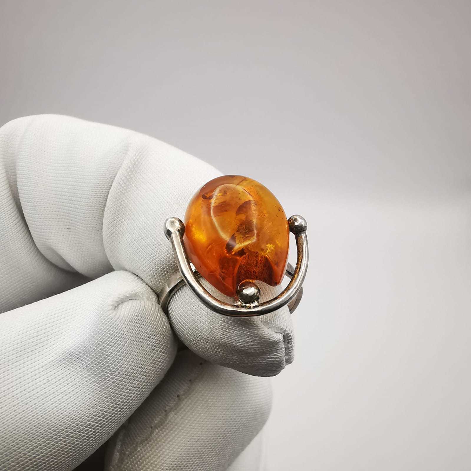Exclusive Vintage Silver Ring and Earrings with Honey Natural Amber Filigree